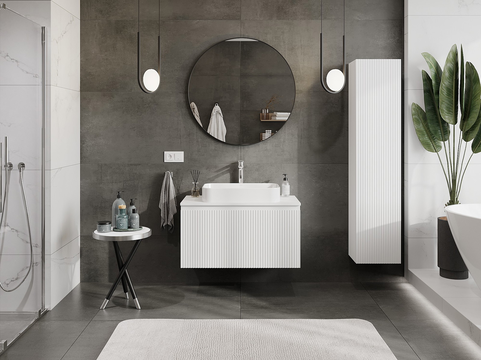 Mexen Rivel armário de casa de banho de 90 cm com tampo, 1 gaveta, frisada, branco mate - 91A20-09047-1-BFC01