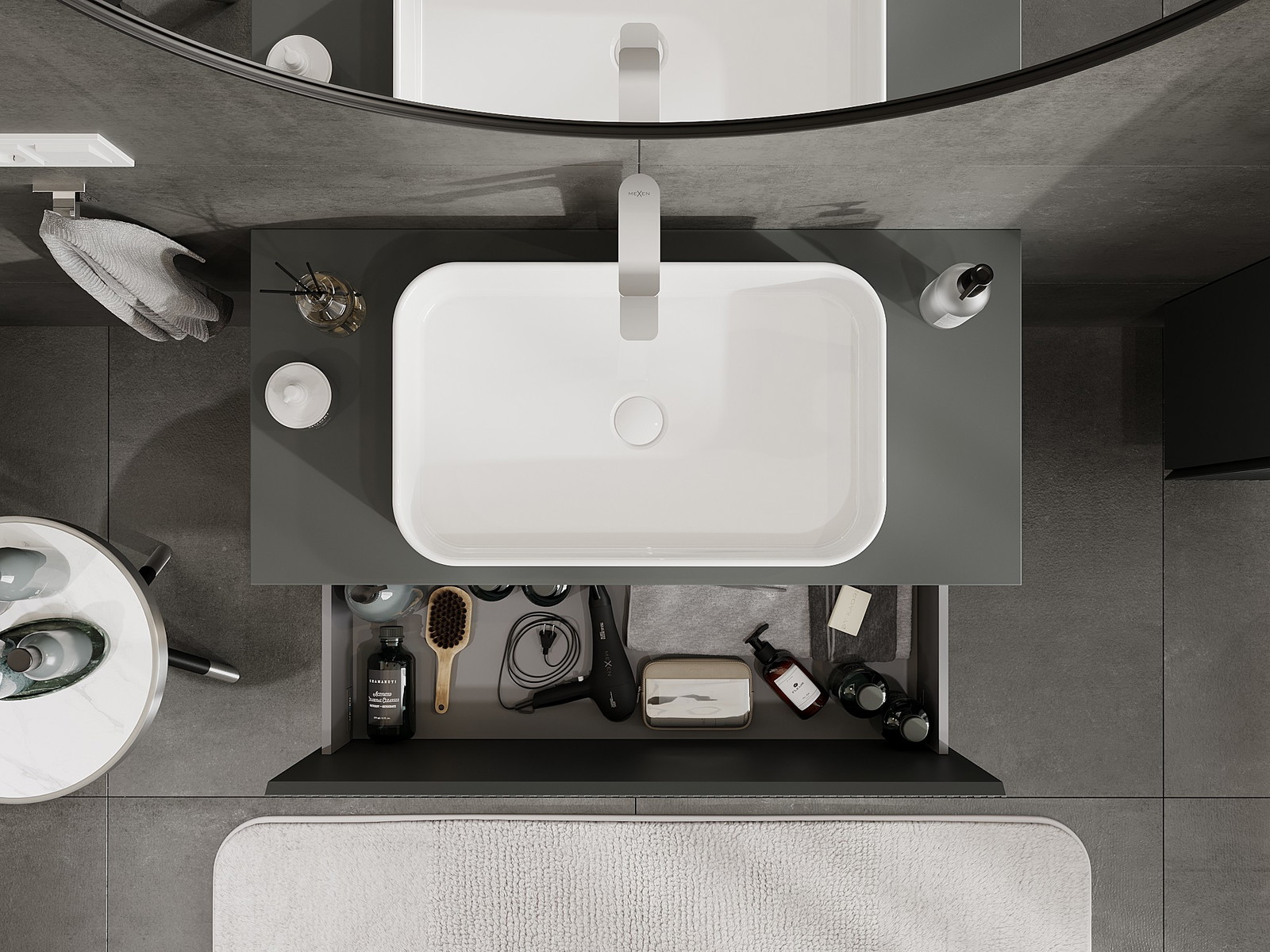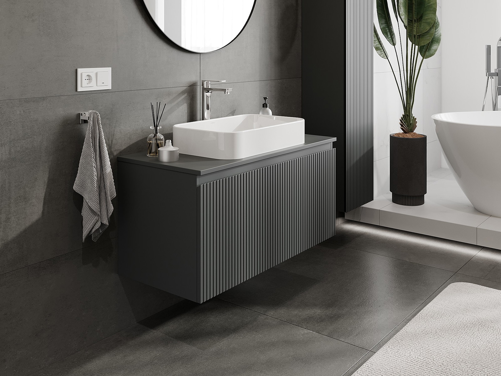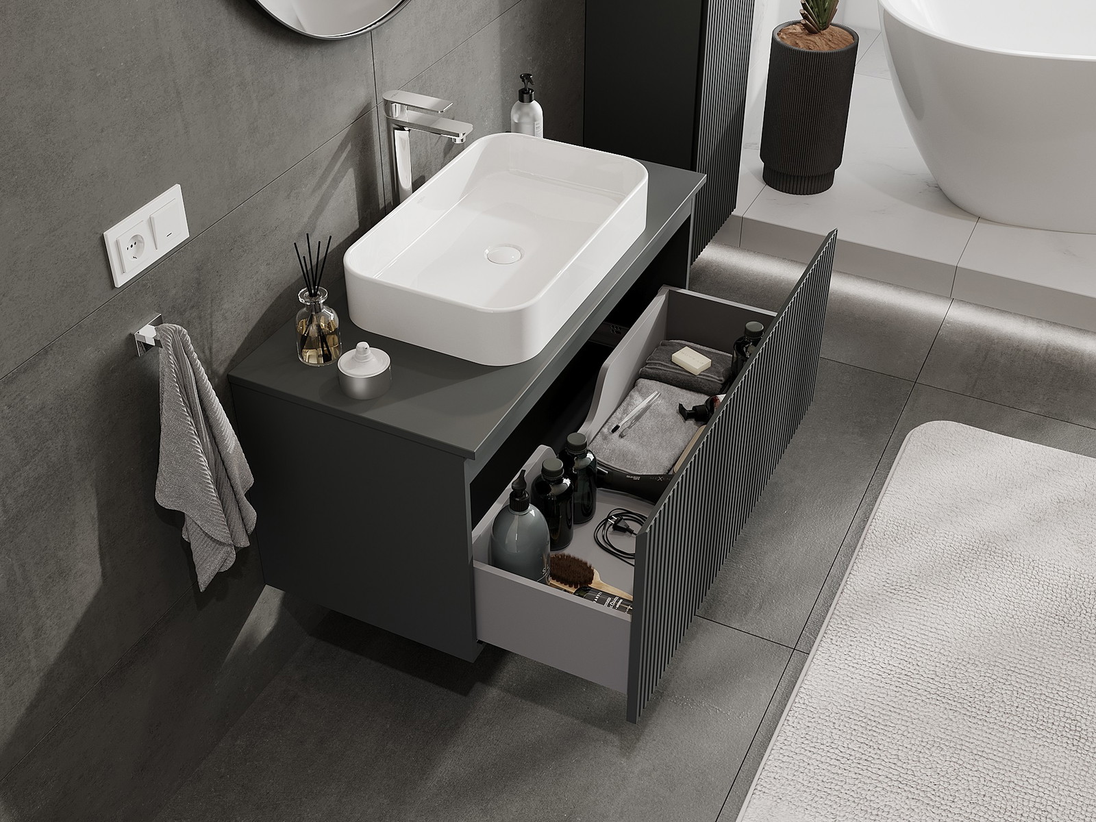 Mexen Rivel armário de casa de banho de 100 cm com bancada, 1 gaveta, frisado, grafite mate - 91A20-10047-1-BFC66
