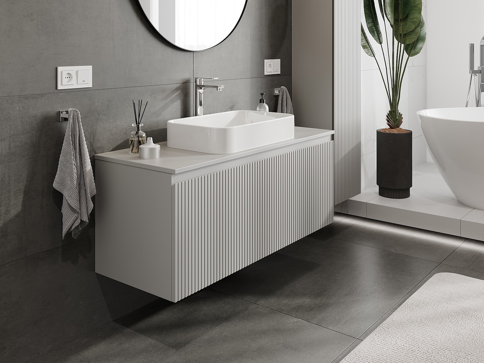 Mexen Rivel armário de casa de banho com bancada de 120 cm com 1 gaveta, canelado, cinza mate - 91A20-12047-1-BFC62