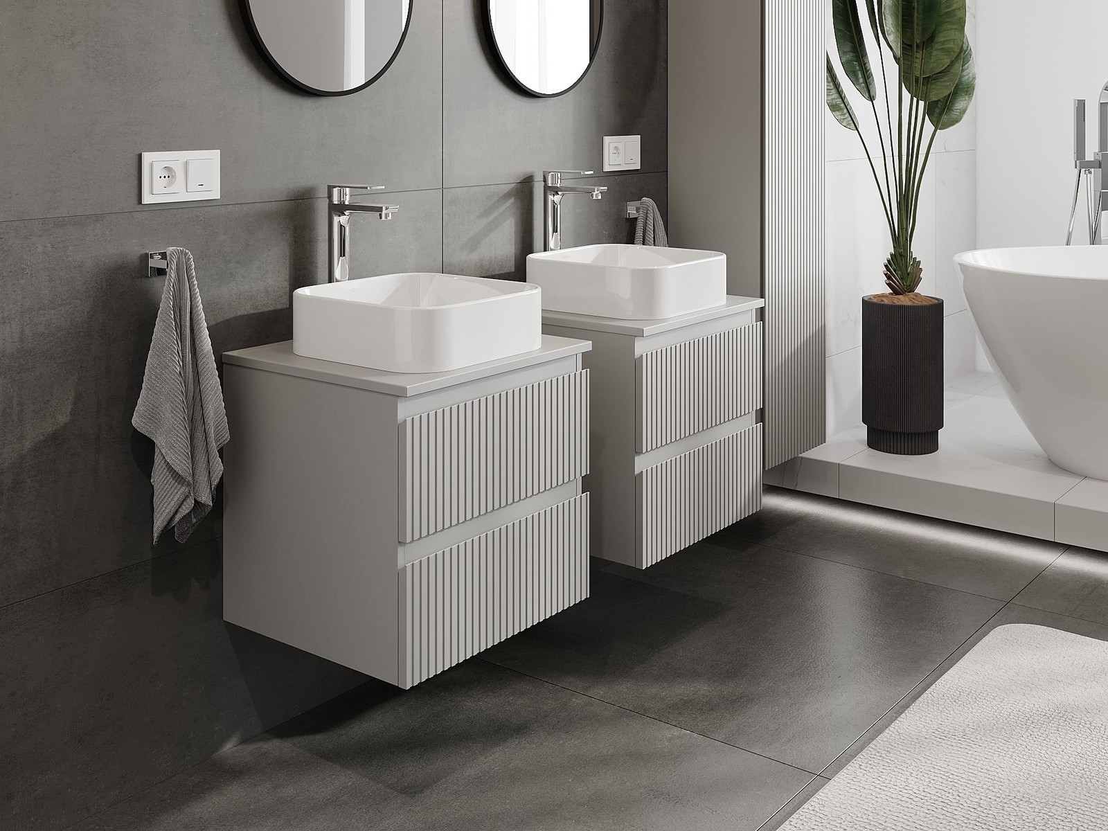 Mexen Rivel armário de casa de banho sob-lavatório 50 cm com tampo, 2 gavetas, ranhurado, cinza mate - 91A20-05047-2-BFFC62