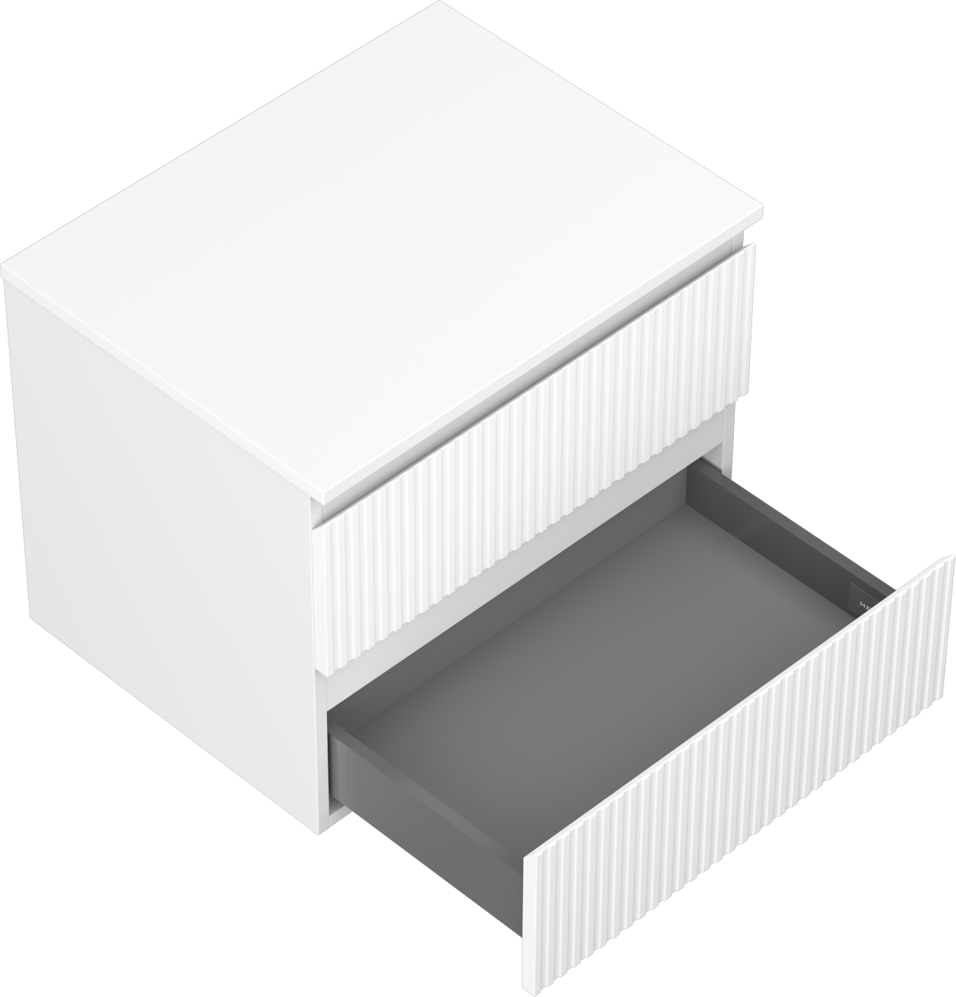 Mexen Rivel armário de casa de banho sob o lavatório 60 cm com tampo, 2 gavetas, ranhurado, branco mate - 91A20-06047-2-BFFC01