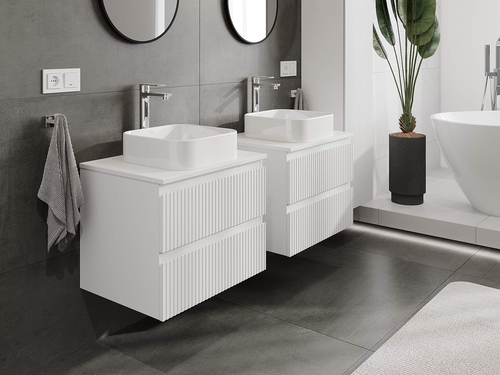 O painel coberto com um verniz de alta qualidade é uma excelente escolha para a casa de banho, proporcionando um aspeto elegante e uma grande resistência à ação da humidade e riscos. O verniz de alta qualidade protege a superfície do tampo, garantindo-lhe uma durabilidade longa, estética e facilidade de manutenção.