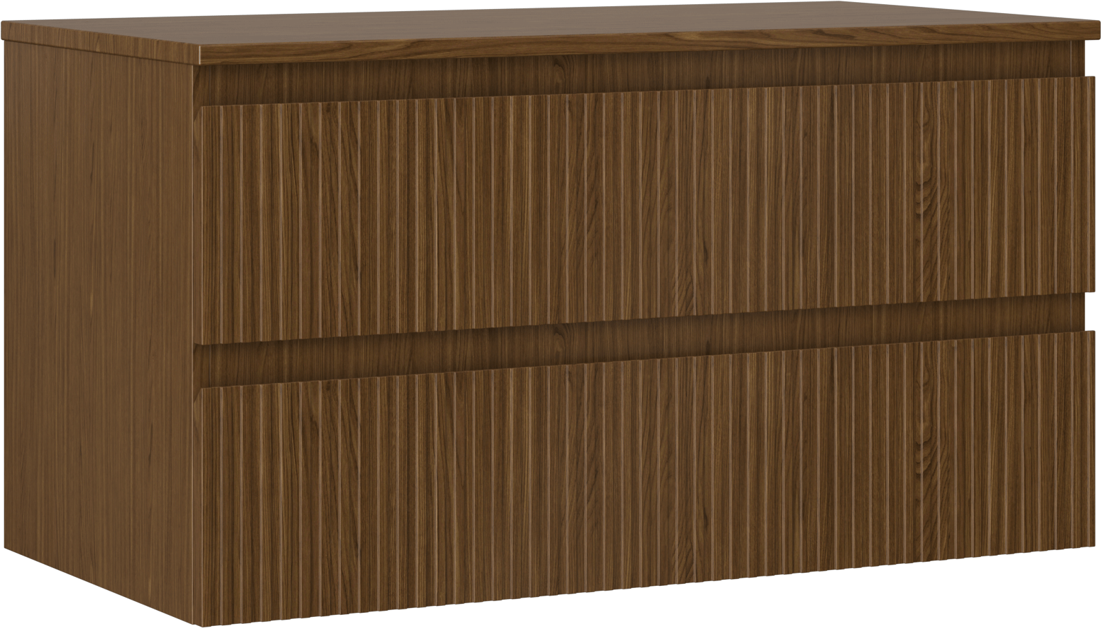 Mexen Rivel armário de casa de banho sob lavatório 90 cm com tampo, 2 gavetas, ranhurado, nogueira - 91A20-09047-2-BFFC86