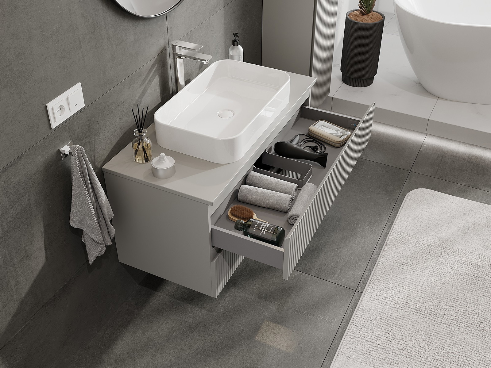Graças a materiais sólidos, execução precisa e soluções tecnológicas modernas, o produto garante conforto de uso, resistência à humidade e variações de temperatura, bem como uma aparência elegante que se adapta a diferentes estilos de casas de banho.