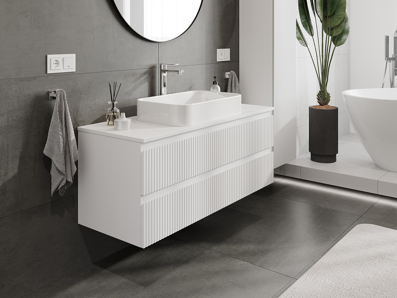 Mexen Rivel armário de casa de banho sob bancada 120 cm com tampo, 2 gavetas, ranhurado, branco mate - 91A20-12047-2-BFFC01
