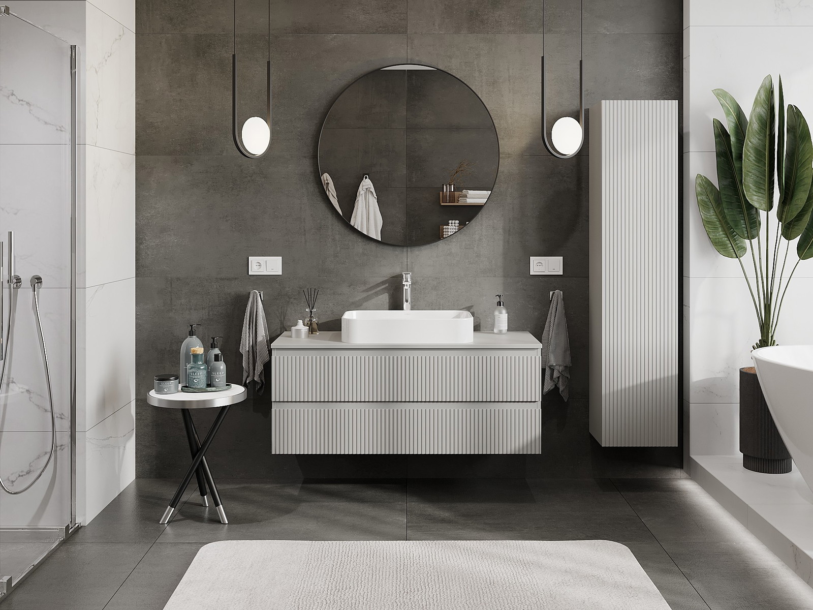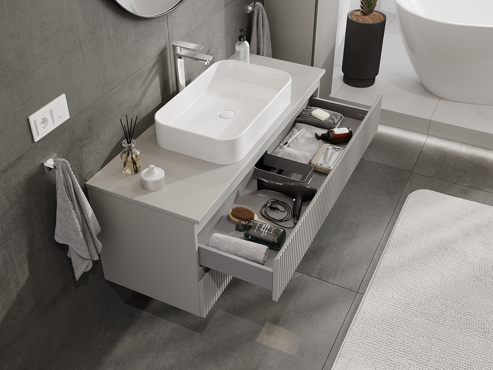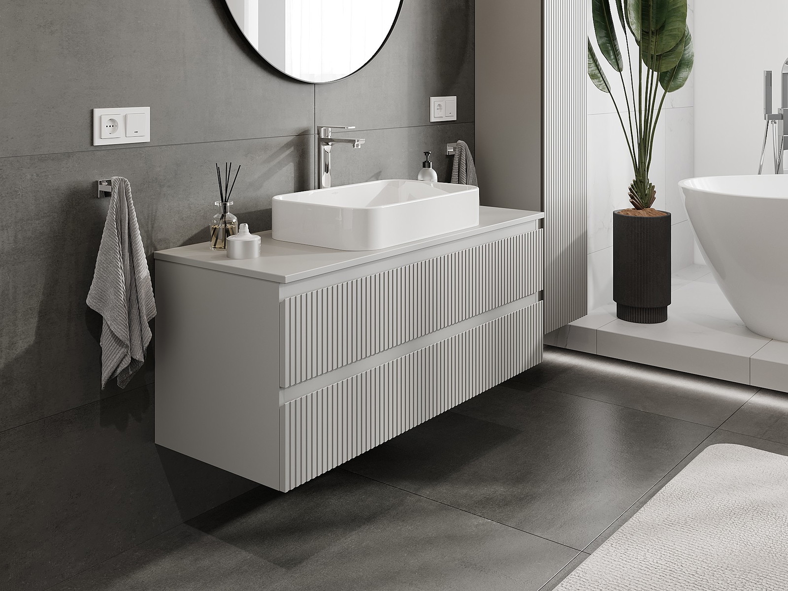 Mexen Rivel móvel de casa de banho por baixo do lavatório 120 cm com tampo, 2 gavetas, canelado, cinzento mate