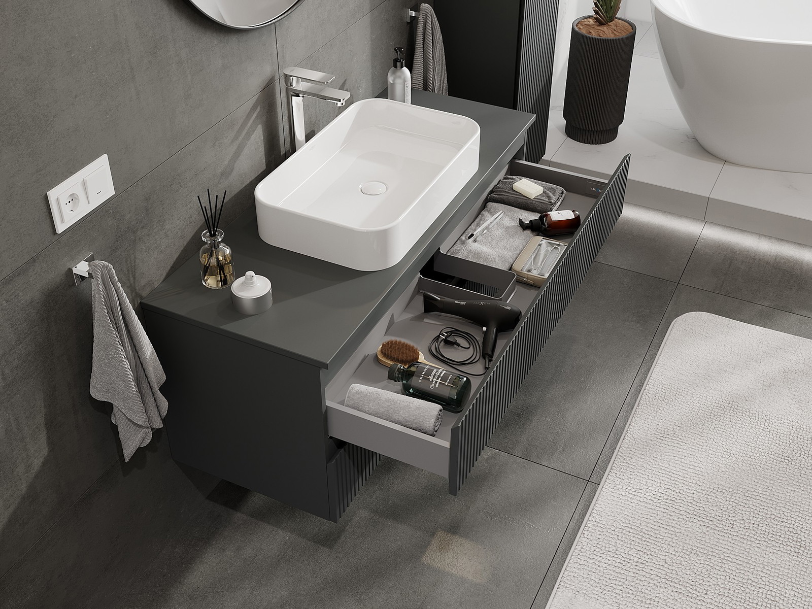 Mexen Rivel móvel de casa de banho para lavatório 120 cm com tampo, 2 gavetas, canelado, grafite mate - 91A20-12047-2-BFFC66