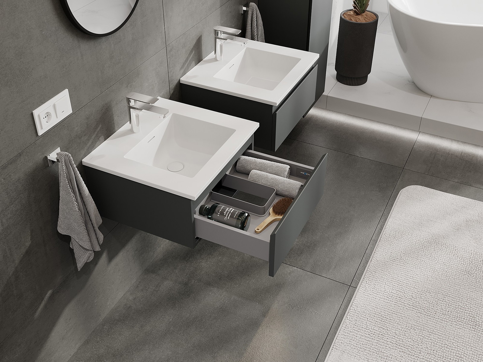 Mexen Orio armário de casa de banho 50 cm com lavatório Otis, 1 gaveta, grafite mate/branco mate - 91A10-05023-1-BF66-W18M01
