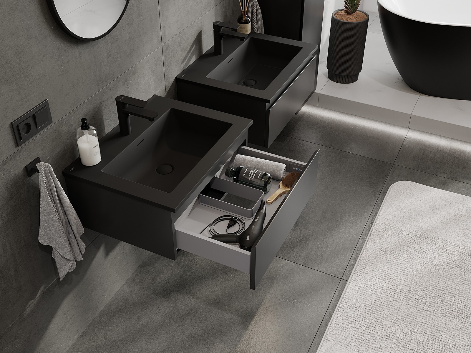 Mexen Orio armário de casa de banho 60 cm com lavatório Otis, 1 gaveta, preto mate - 91A10-06023-1-BF71-W18M71