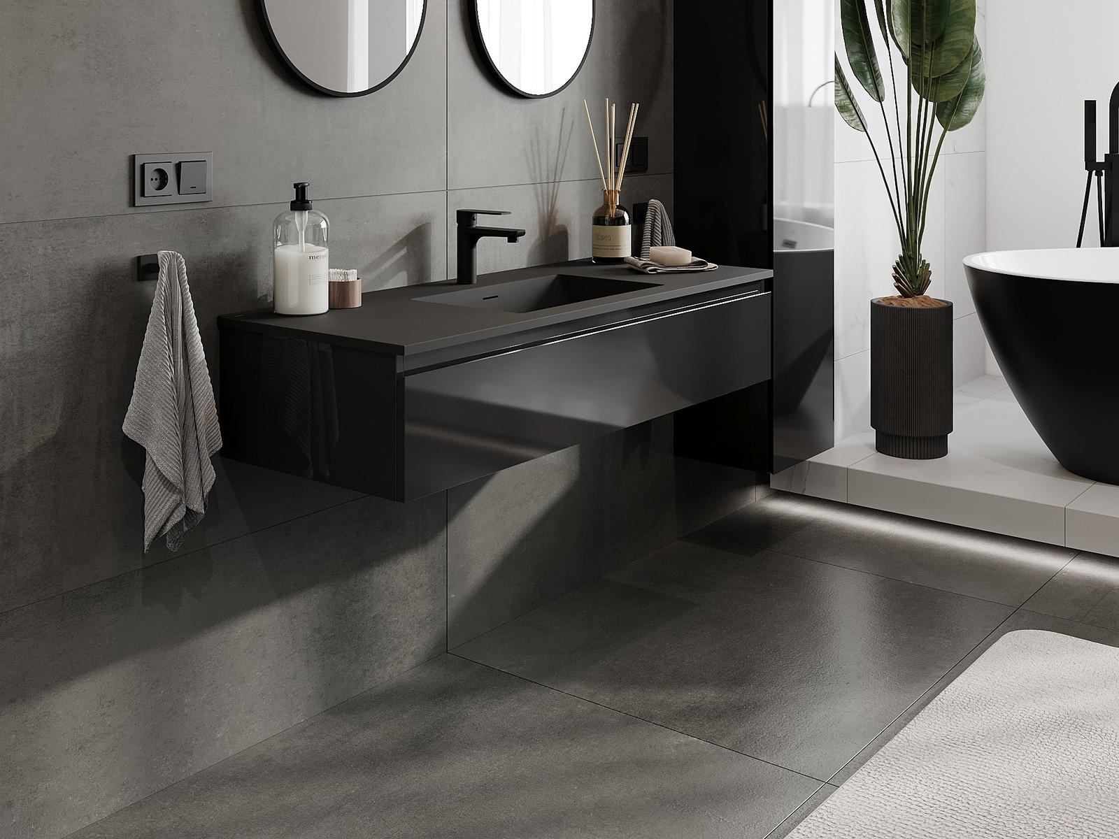 Mexen Orio armário de casa de banho de 120 cm com lavatório Otis, 1 gaveta, preto brilhante/preto mate