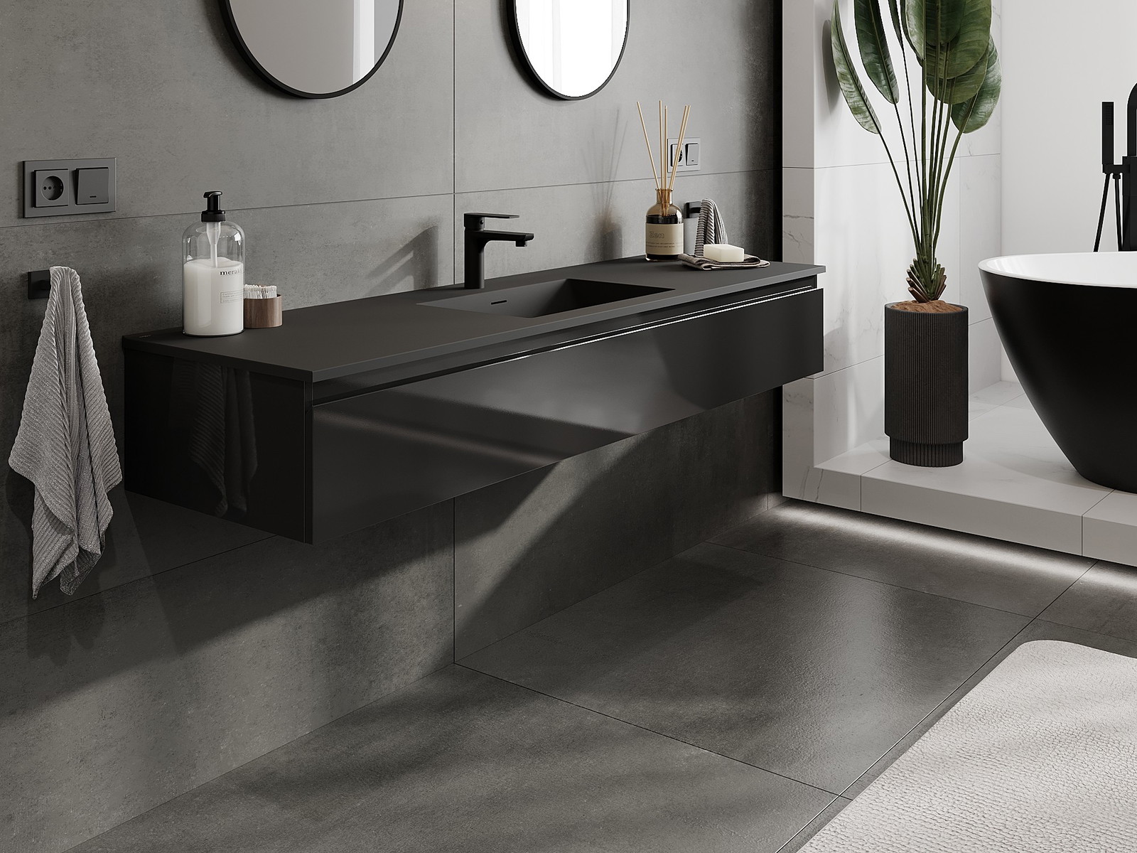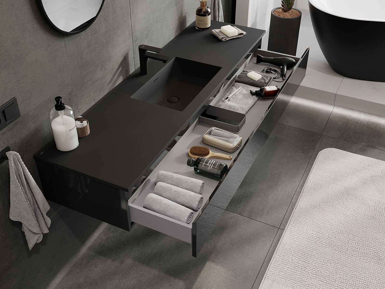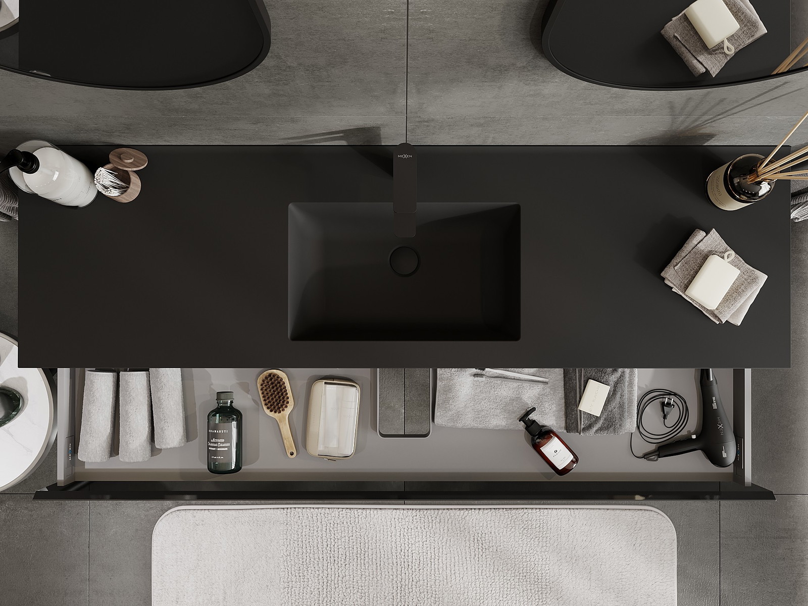 Mexen Orio armário de casa de banho 160 cm com lavatório Otis, 1 gaveta, preto brilhante/preto mate