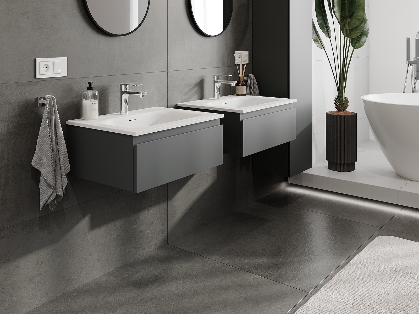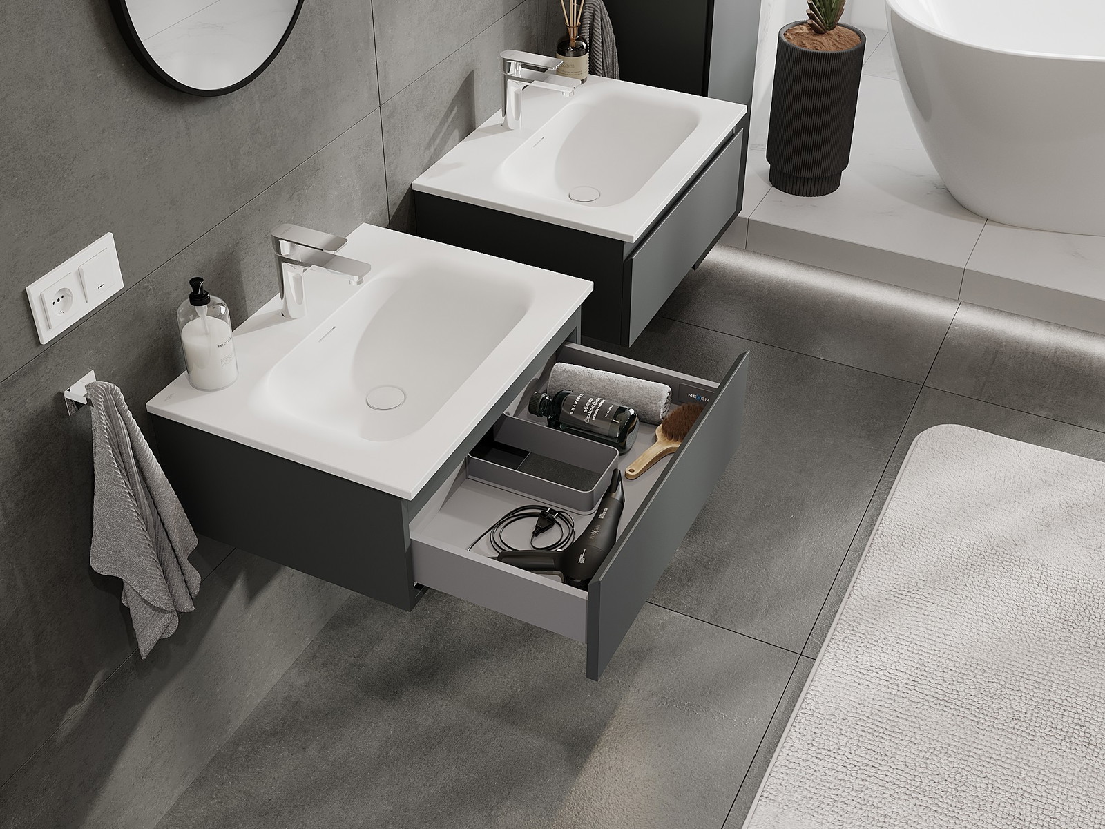 Mexen Orio armário de casa de banho de 60 cm com lavatório Vela, 1 gaveta, grafite mate/branco mate