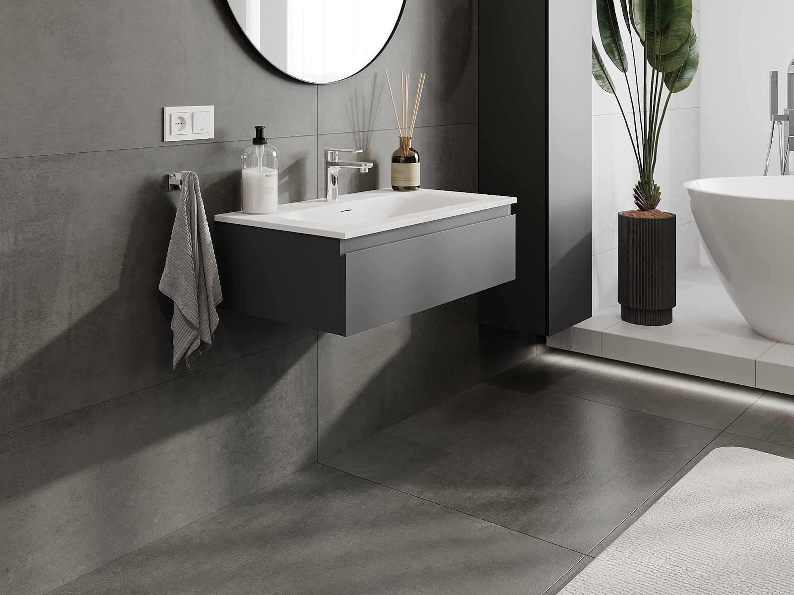 Mexen Orio armário de casa de banho 80 cm com lavatório Vela, 1 gaveta, grafite mate/branco mate - 91A10-08023-1-BF66-W23M01