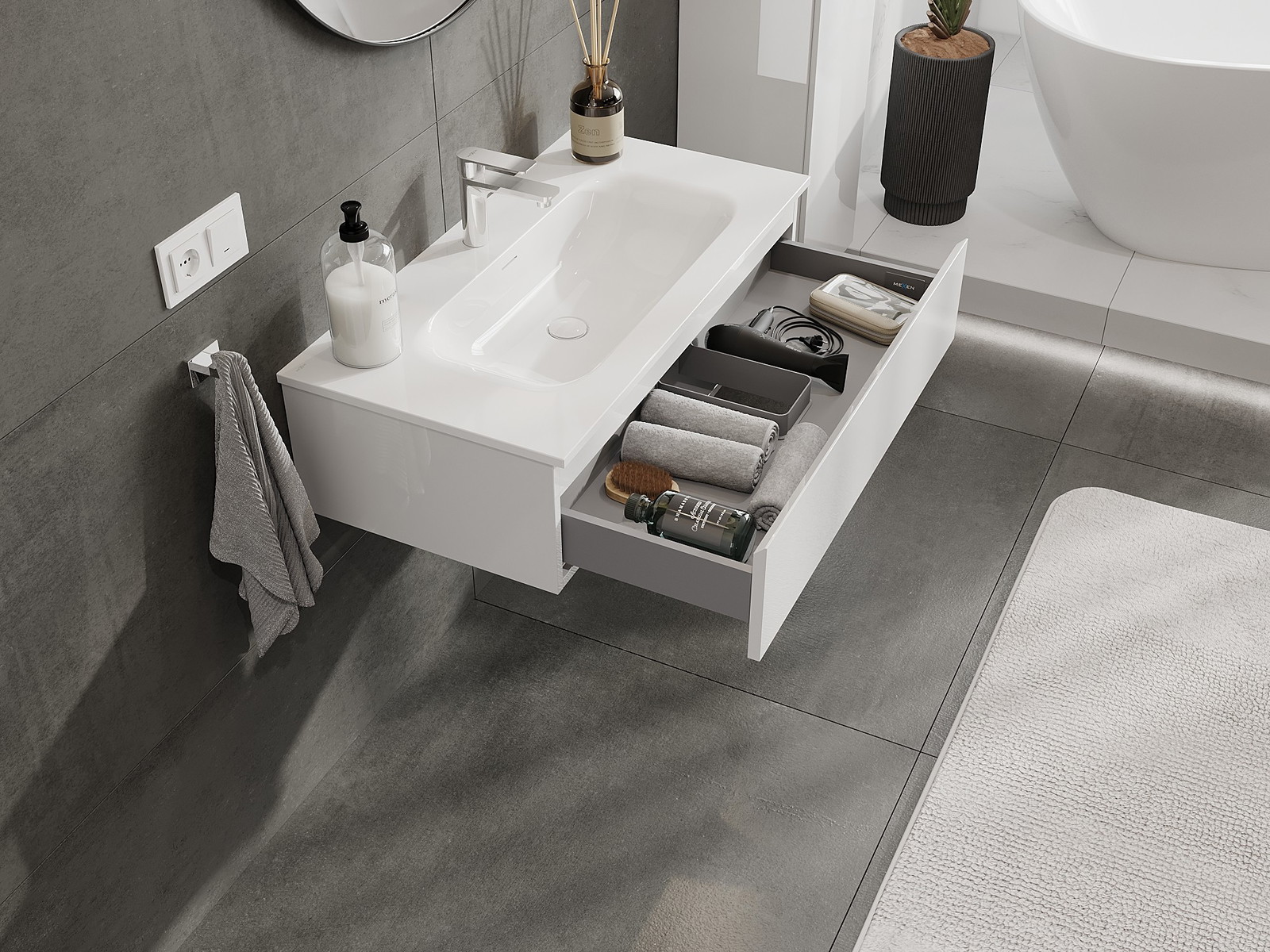 Mexen Orio armário de casa de banho 90 cm com lavatório Vela, 1 gaveta, branco brilho - 91A10-09023-1-BF00-W23M00