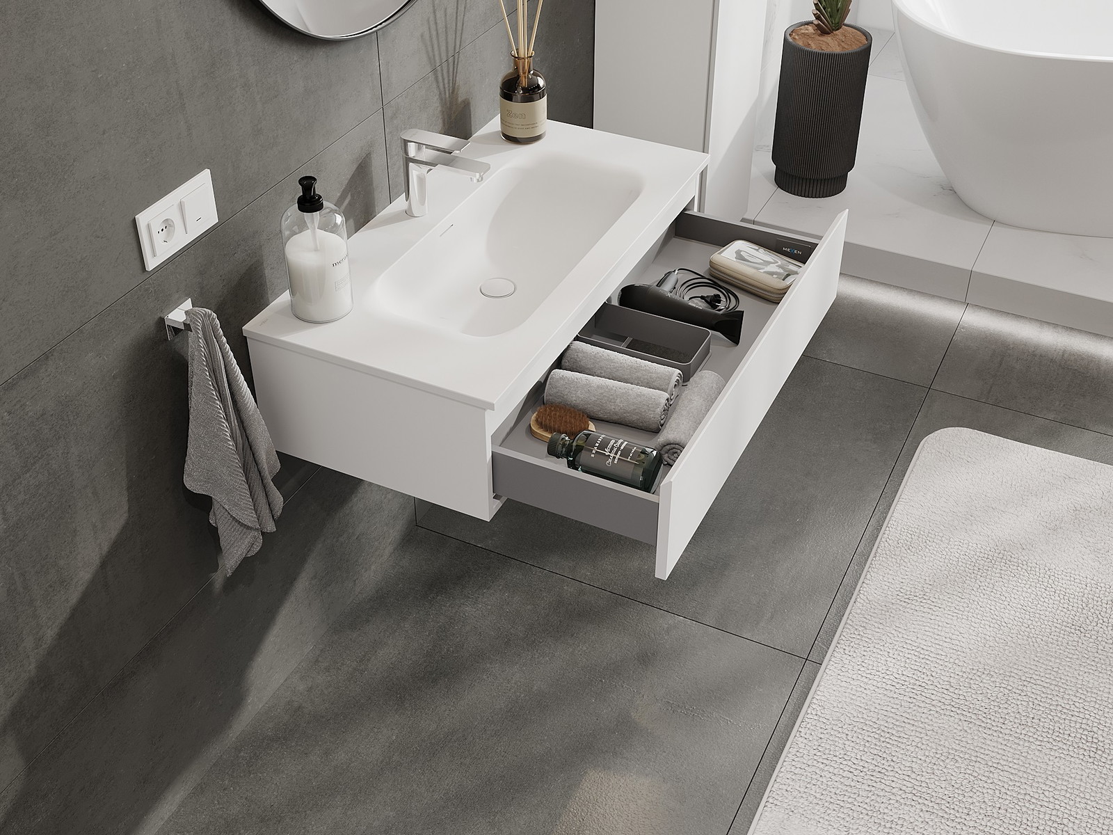 Mexen Orio armário de casa de banho 90 cm com lavatório Vela, 1 gaveta, branco mate - 91A10-09023-1-BF01-W23M01