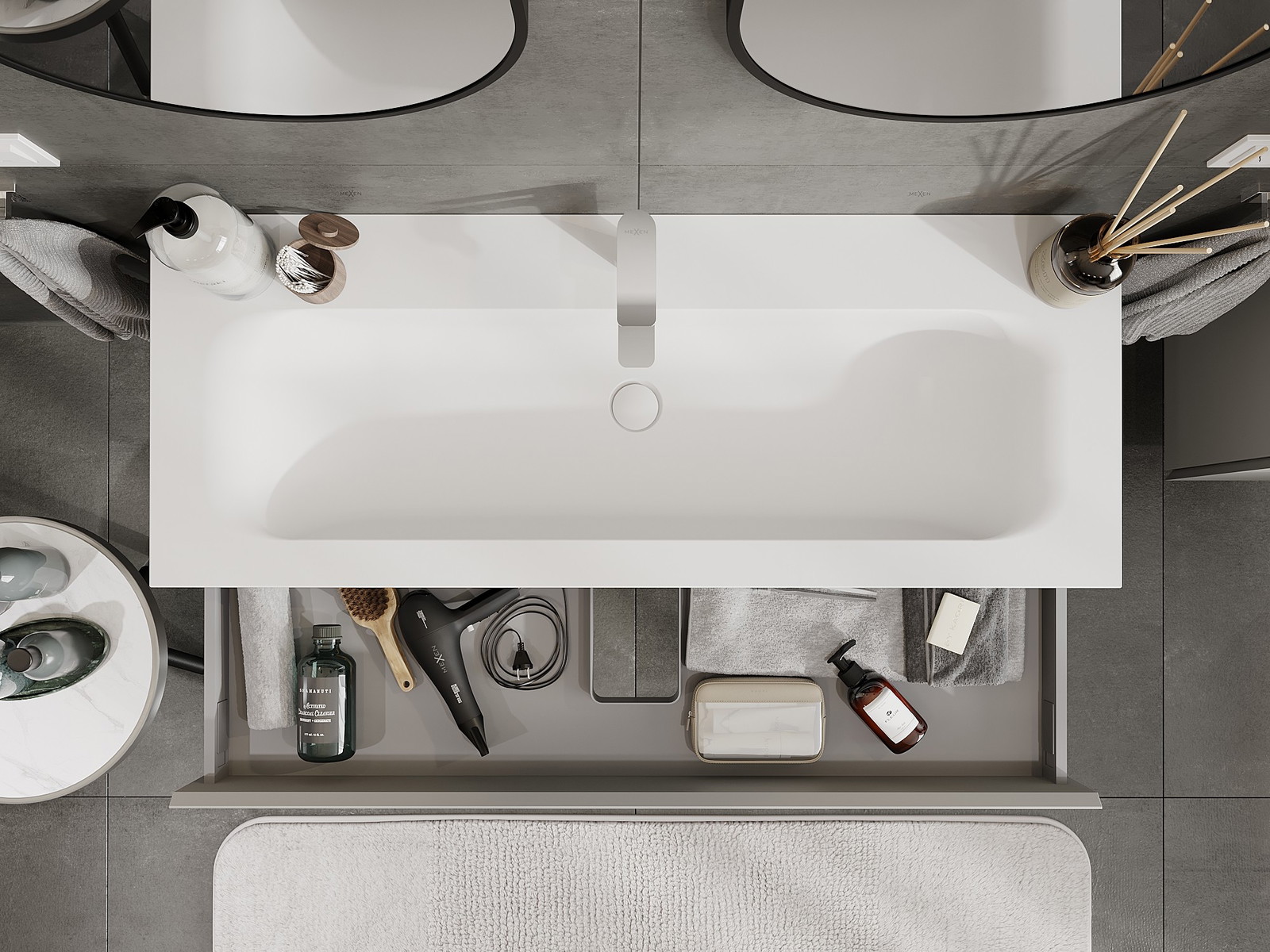 Mexen Orio armário de casa de banho 120 cm com lavatório Vela, 1 gaveta, cinza mate/branco mate - 91A10-12023-1-BF62-W23M01