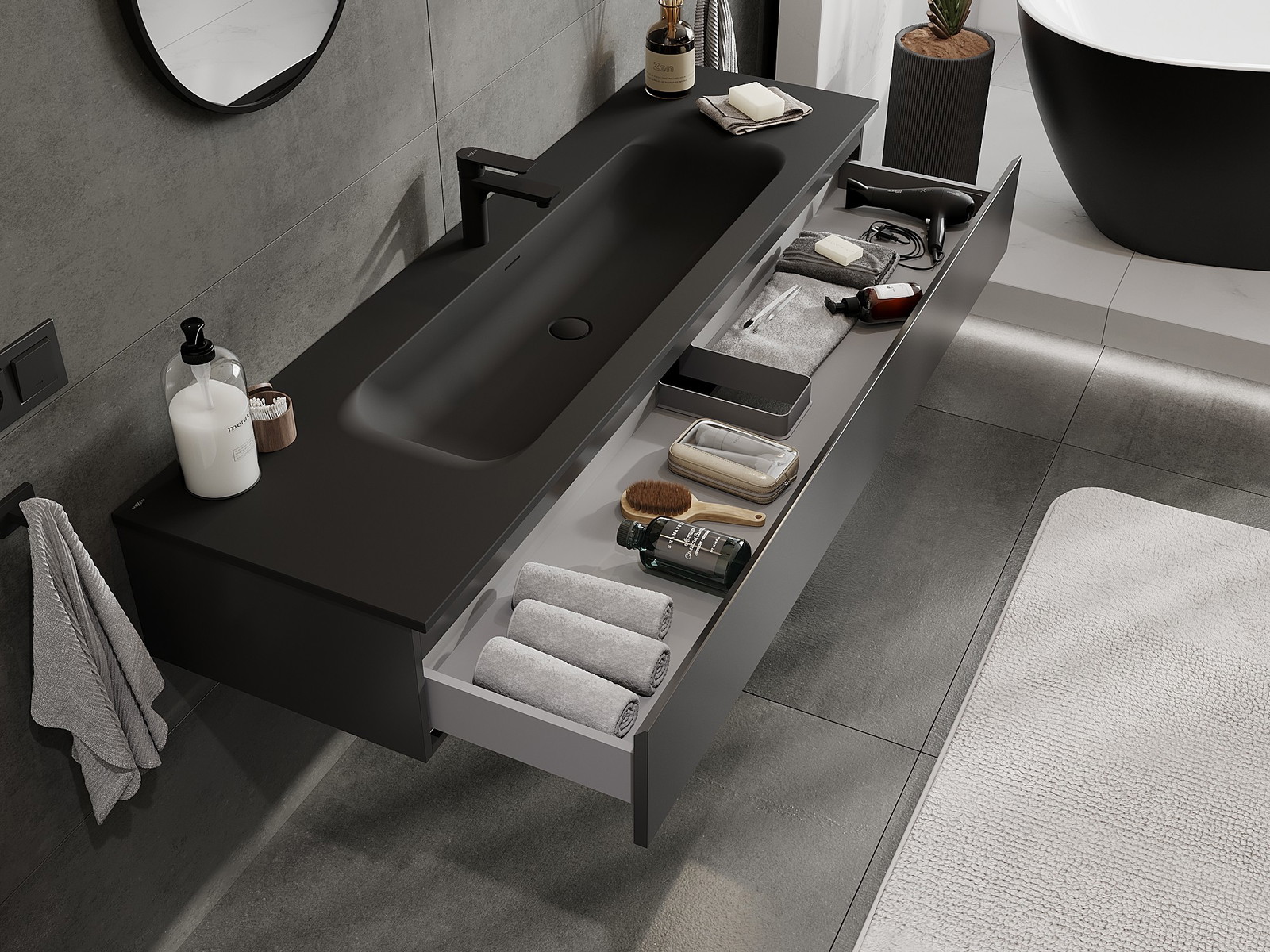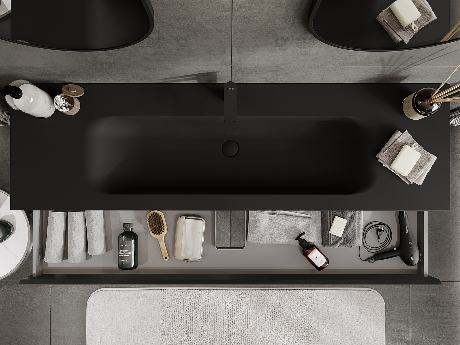 Mexen Orio armário de casa de banho 160 cm com lavatório Vela, 1 gaveta, preto mate - 91A10-16023-1-BF71-W23M71