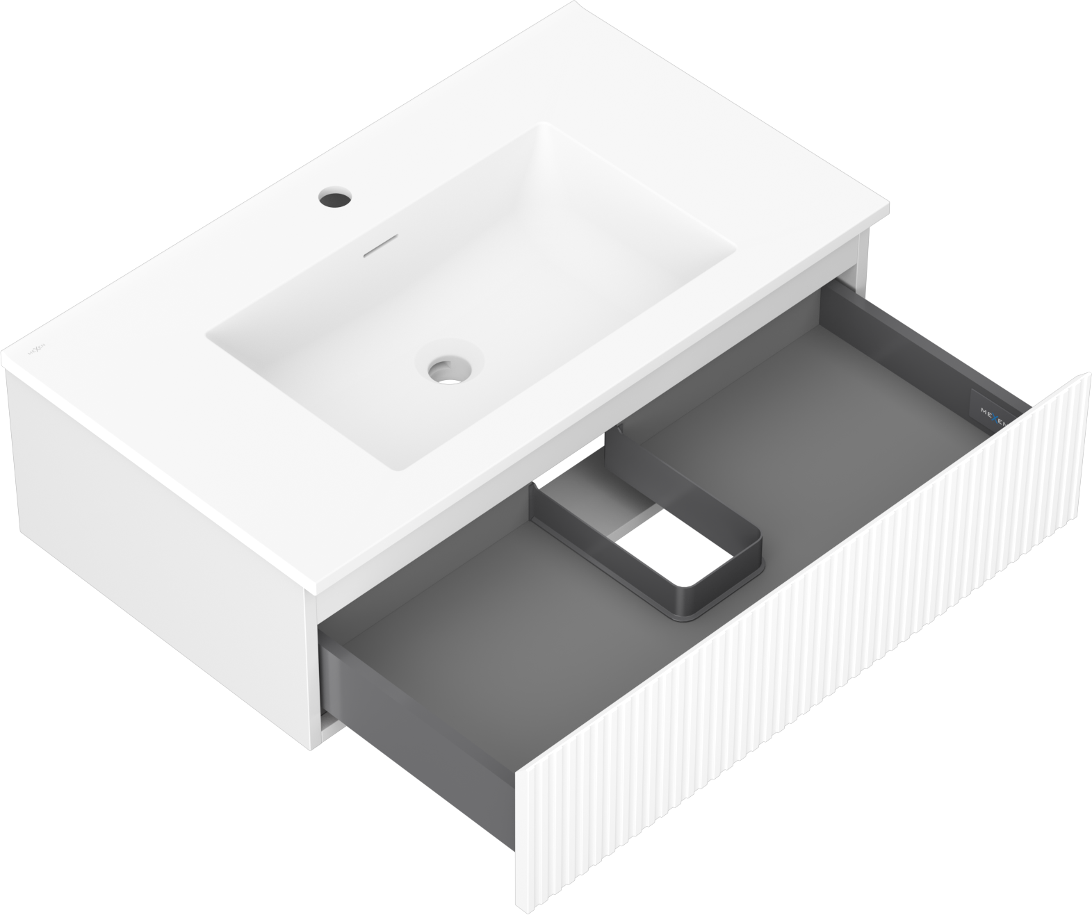 Mexen Rivel armário de casa de banho 80 cm com lavatório Otis, 1 gaveta, canelada, branco mate - 91A20-08023-1-BF01-W18M01