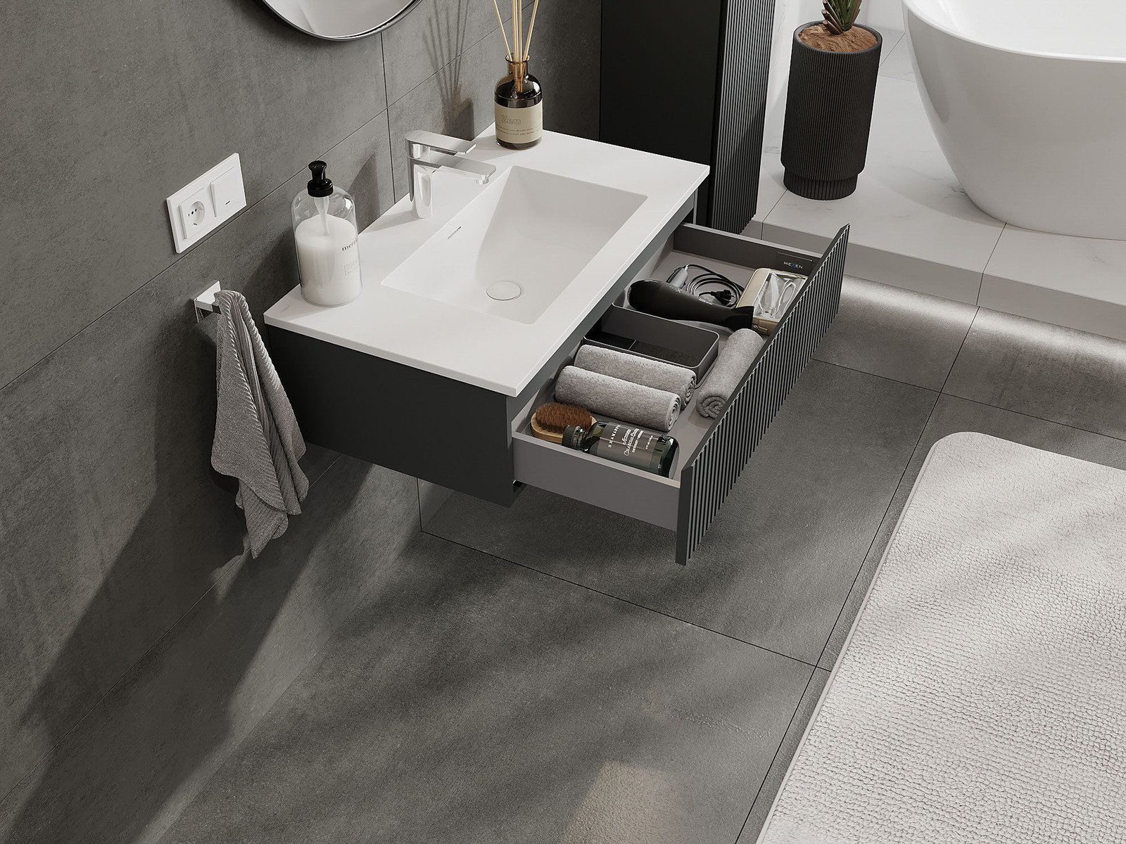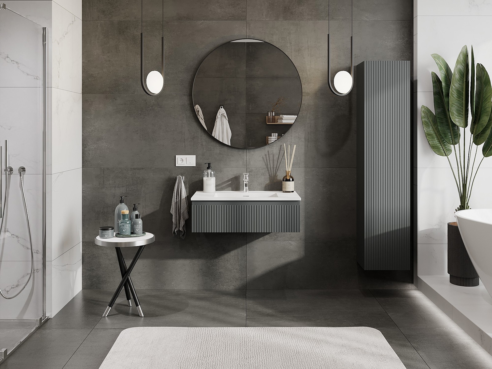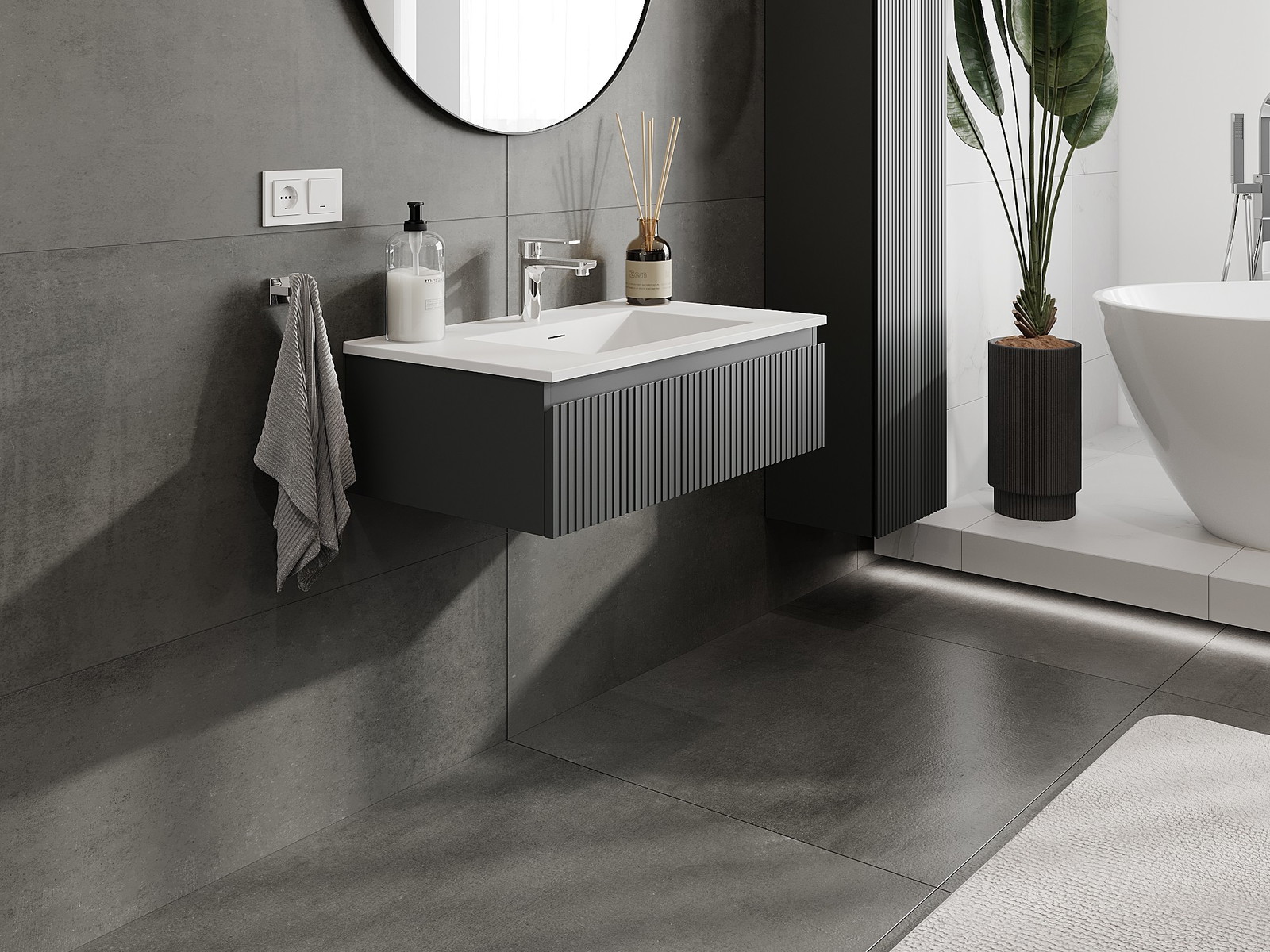 Mexen Rivel armário de casa de banho 80 cm com lavatório Otis, 1 gaveta, canelado, grafite mate/branco mate