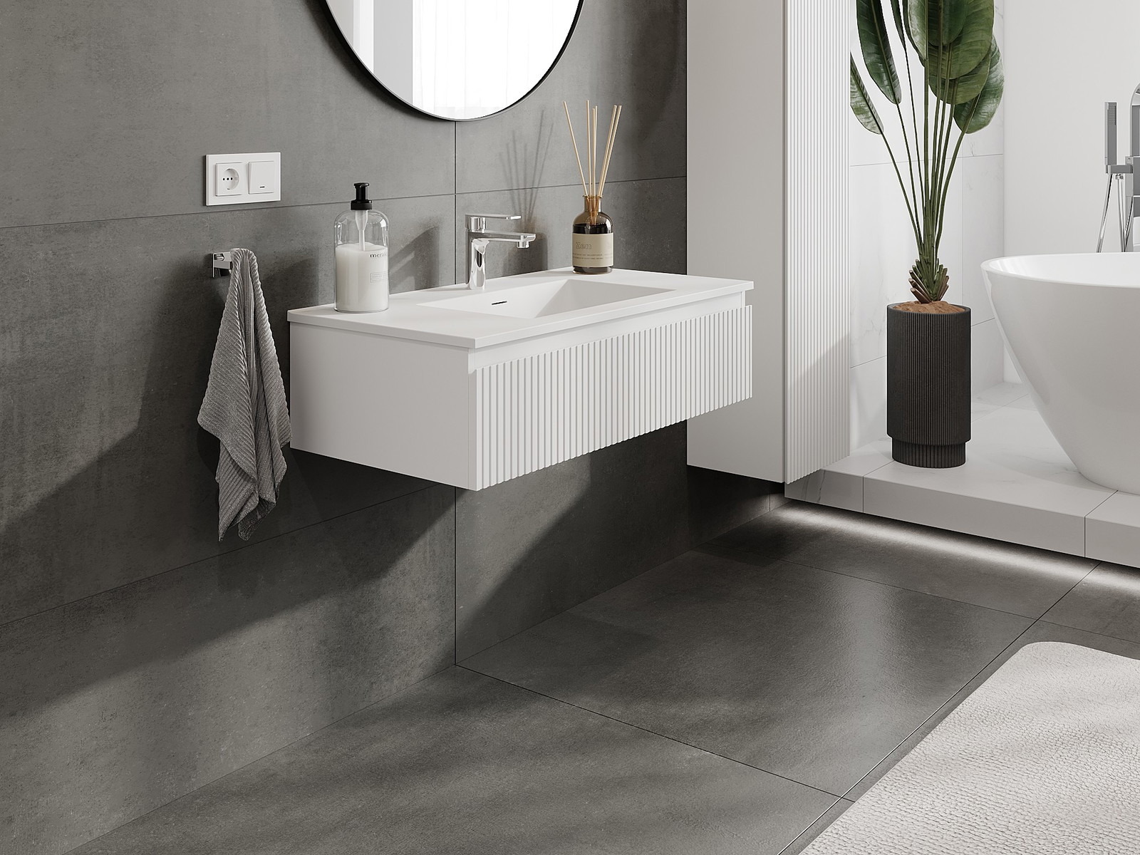 Mexen Rivel armário de casa de banho 90 cm com lavatório Otis, 1 gaveta, canelado, branco mate - 91A20-09023-1-BF01-W18M01