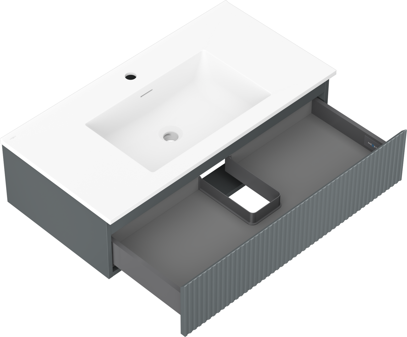 Mexen Rivel armário de casa de banho 90 cm com lavatório Otis, 1 gaveta, frisado, grafite mate/branco mate