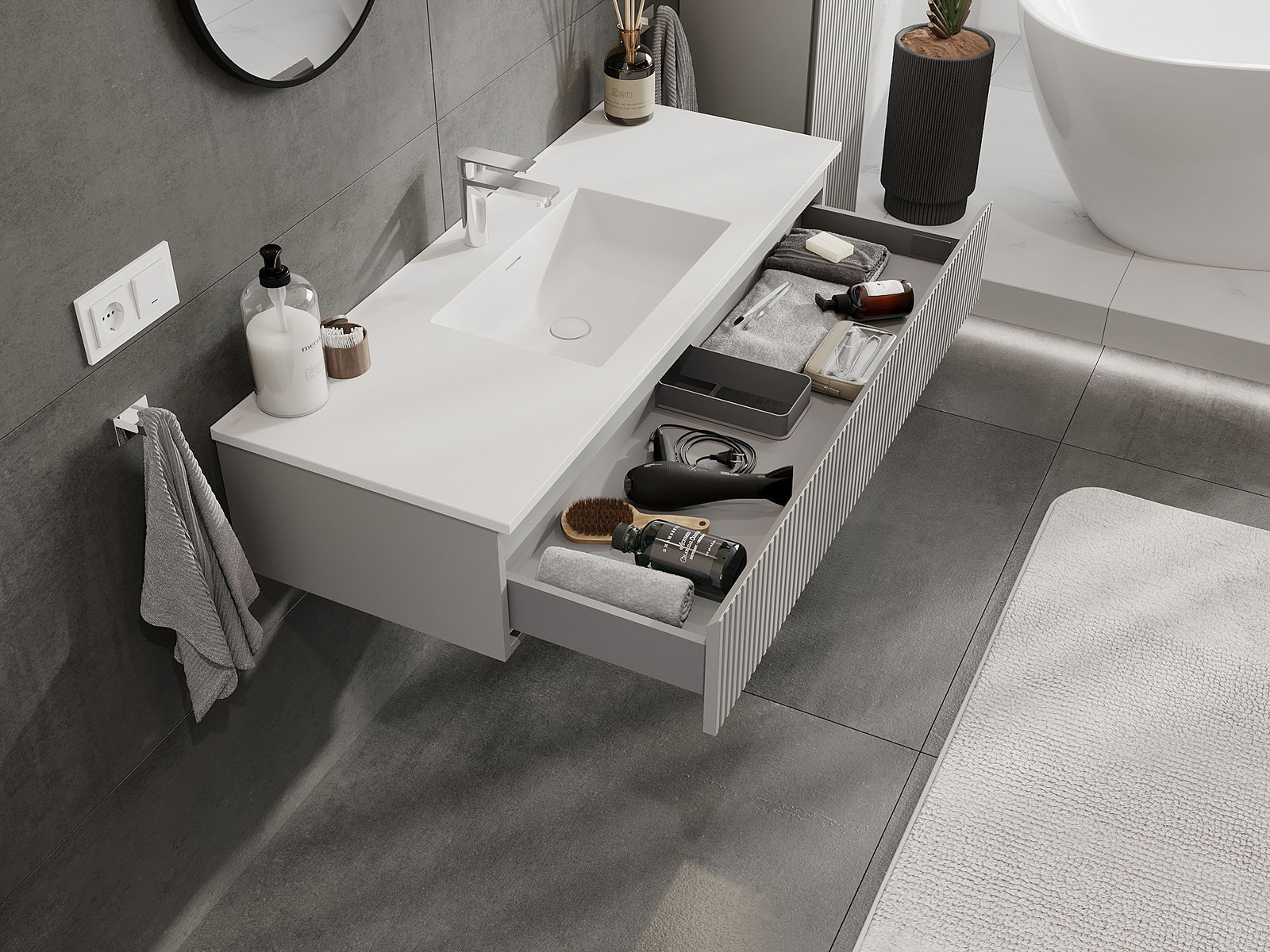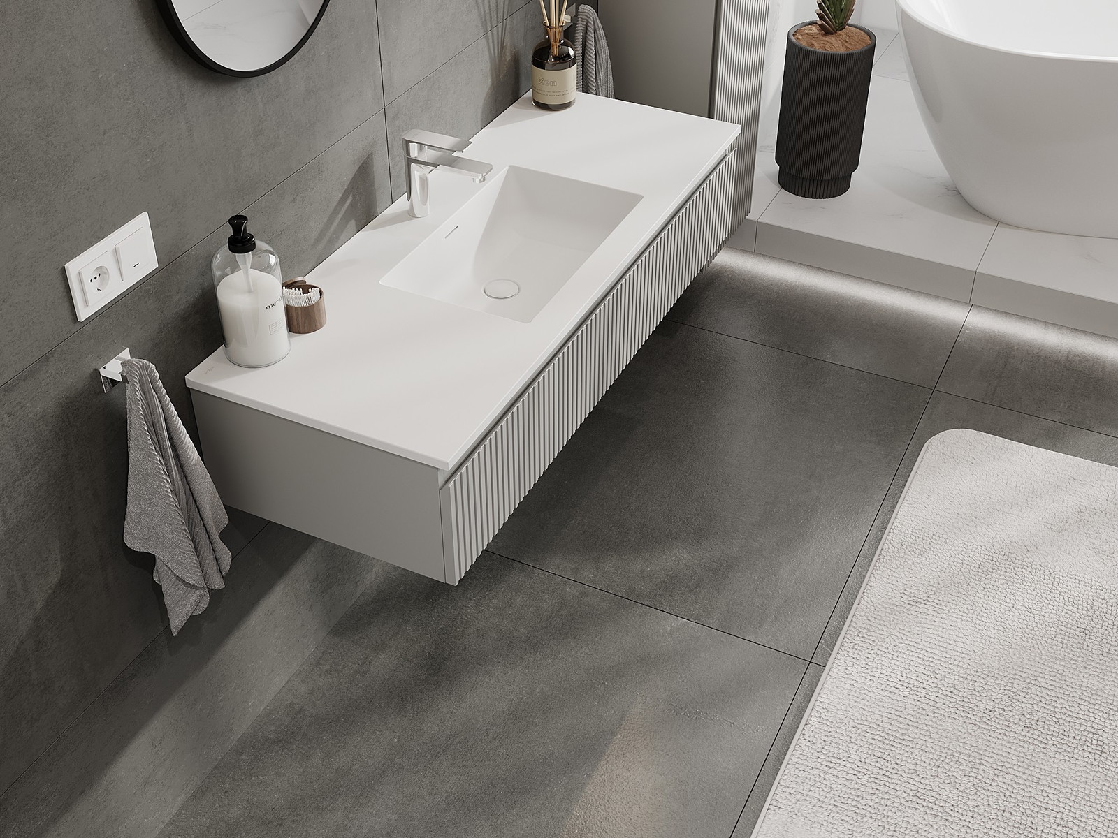 Mexen Rivel armário de casa de banho 120 cm com lavatório Otis, 1 gaveta, frisado, cinza matte/branco matte