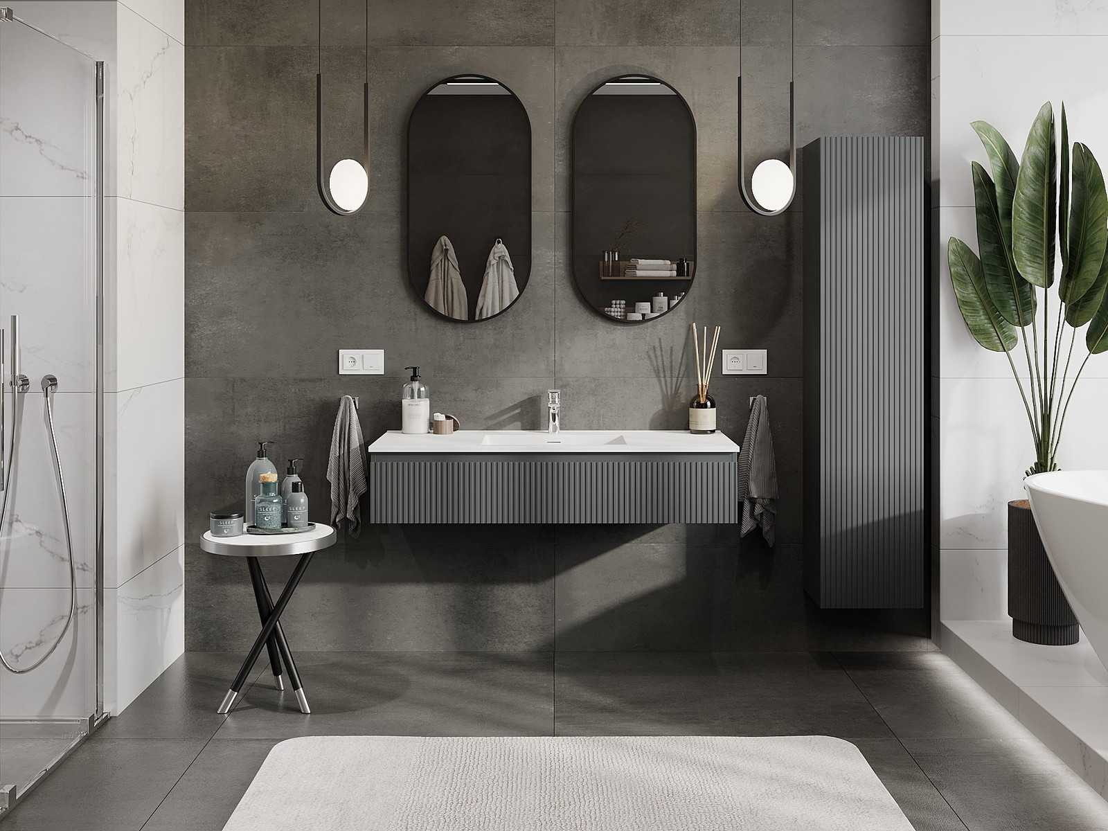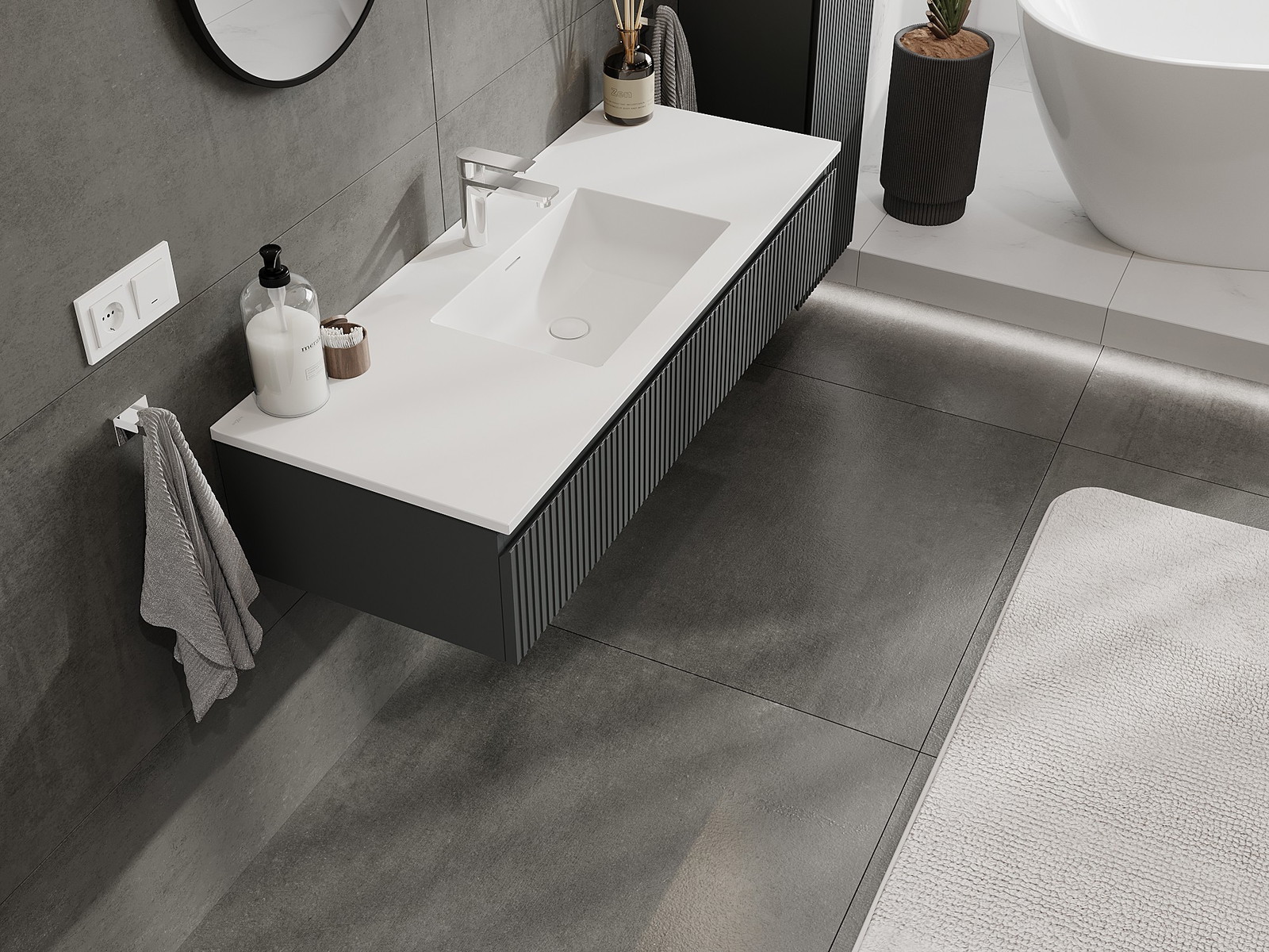 Mexen Rivel armário de casa de banho 120 cm com lavatório Otis, 1 gaveta, canelado, grafite mate/branco mate -