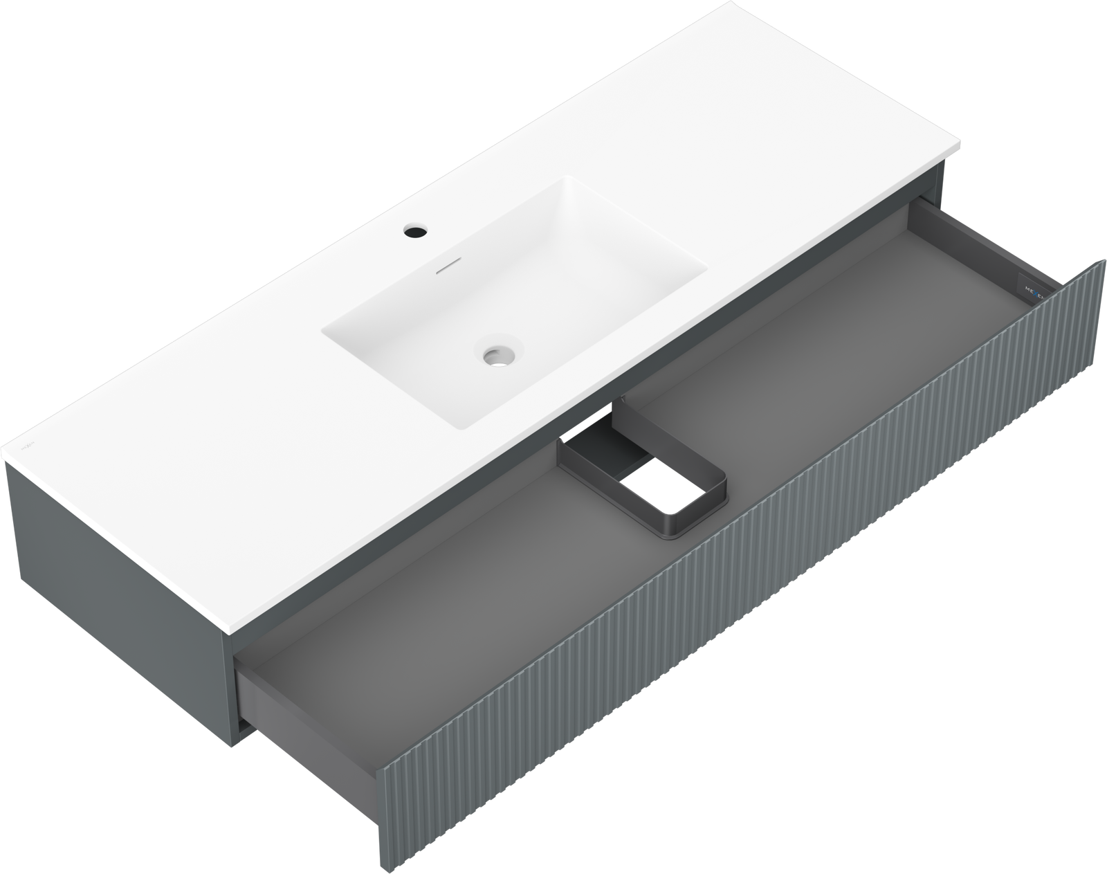 Mexen Rivel armário de casa de banho 140 cm com lavatório Otis, 1 gaveta, canelada, grafite mate/branco mate -