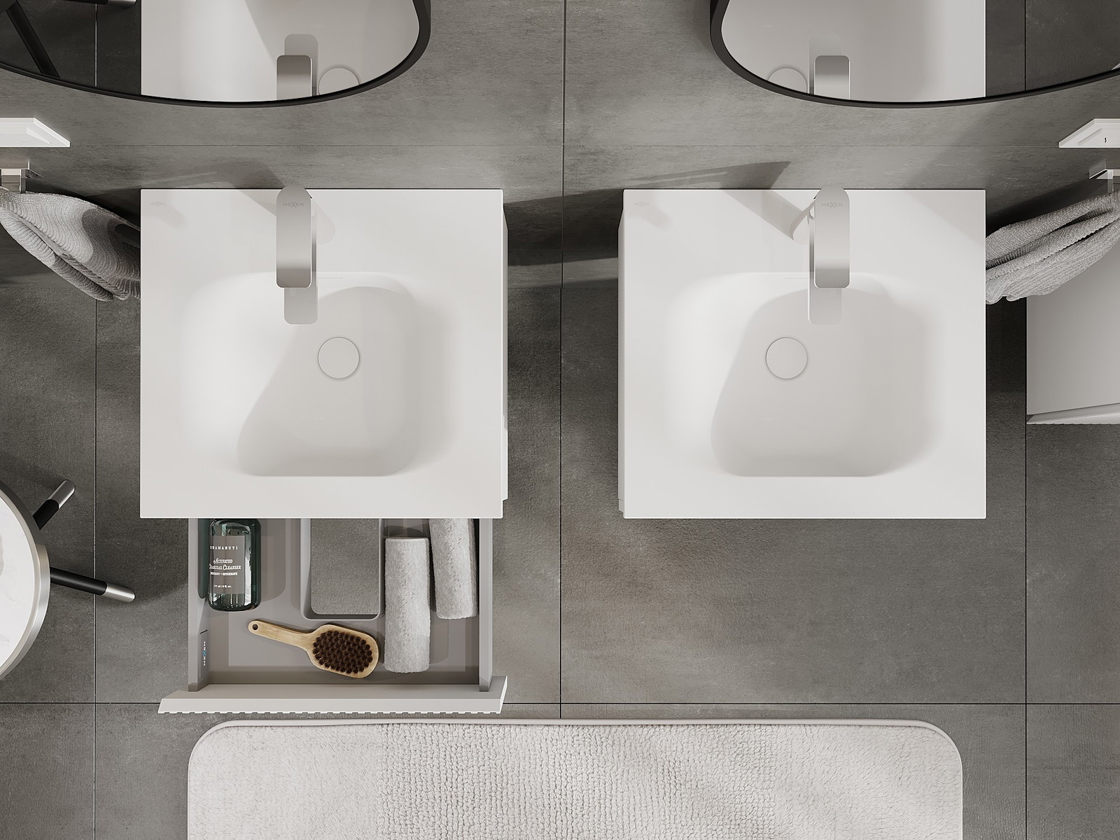 O recorte na gaveta é projetado de forma a acomodar o sifão, que é essencial em instalações de lavatórios. Graças a isso, o móvel pode ser montado de forma totalmente funcional, sem a necessidade de abdicar do espaço da gaveta em prol da instalação.