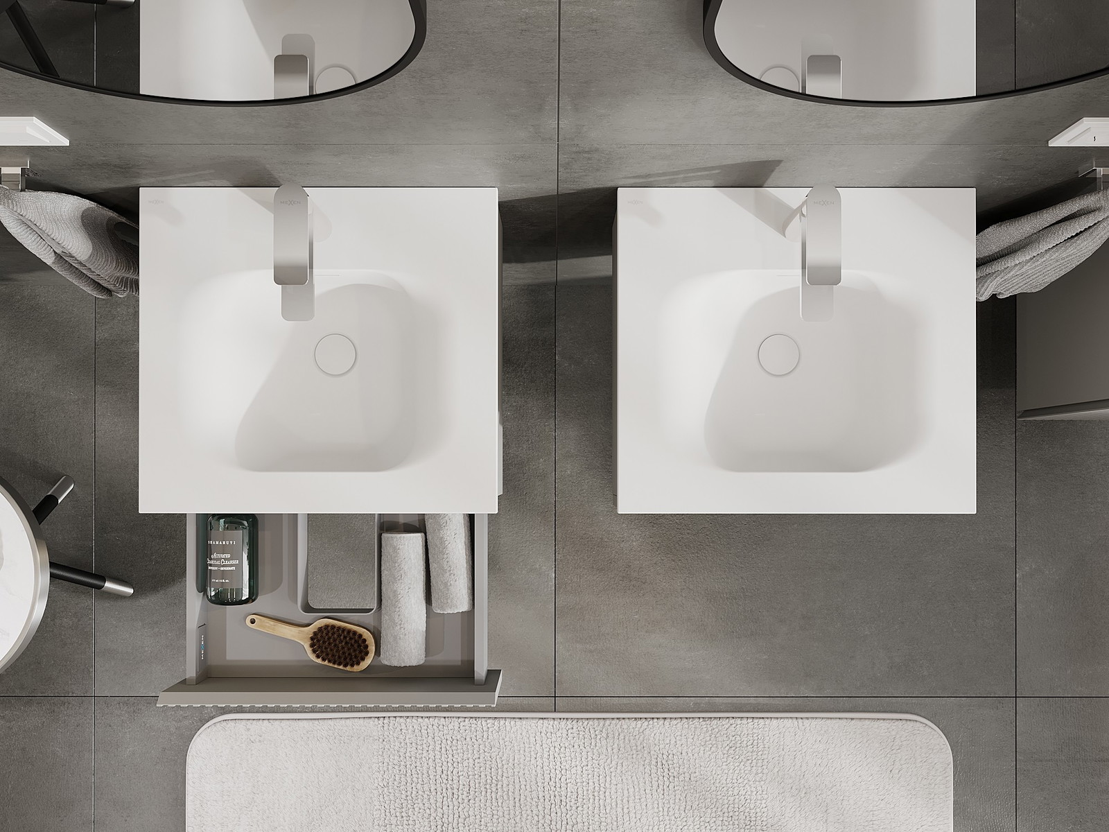 Mexen Rivel armário de casa de banho 50 cm com lavatório Vela, 1 gaveta, canelado, cinza mate/branco mate