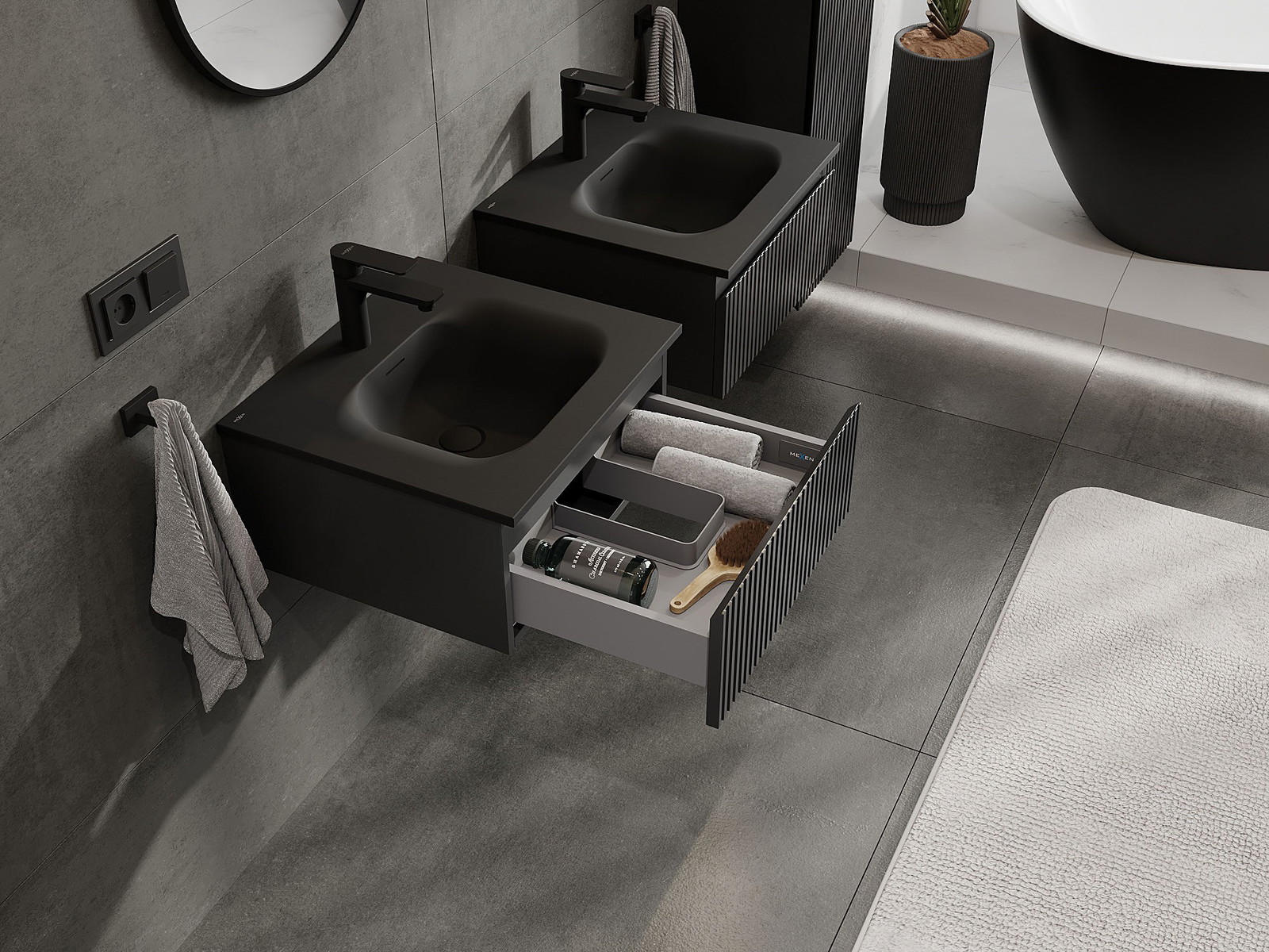 Mexen Rivel armário de casa de banho 50 cm com lavatório Vela, 1 gaveta, canelado, preto mate - 91A20-05023-1-BF71-W23M71