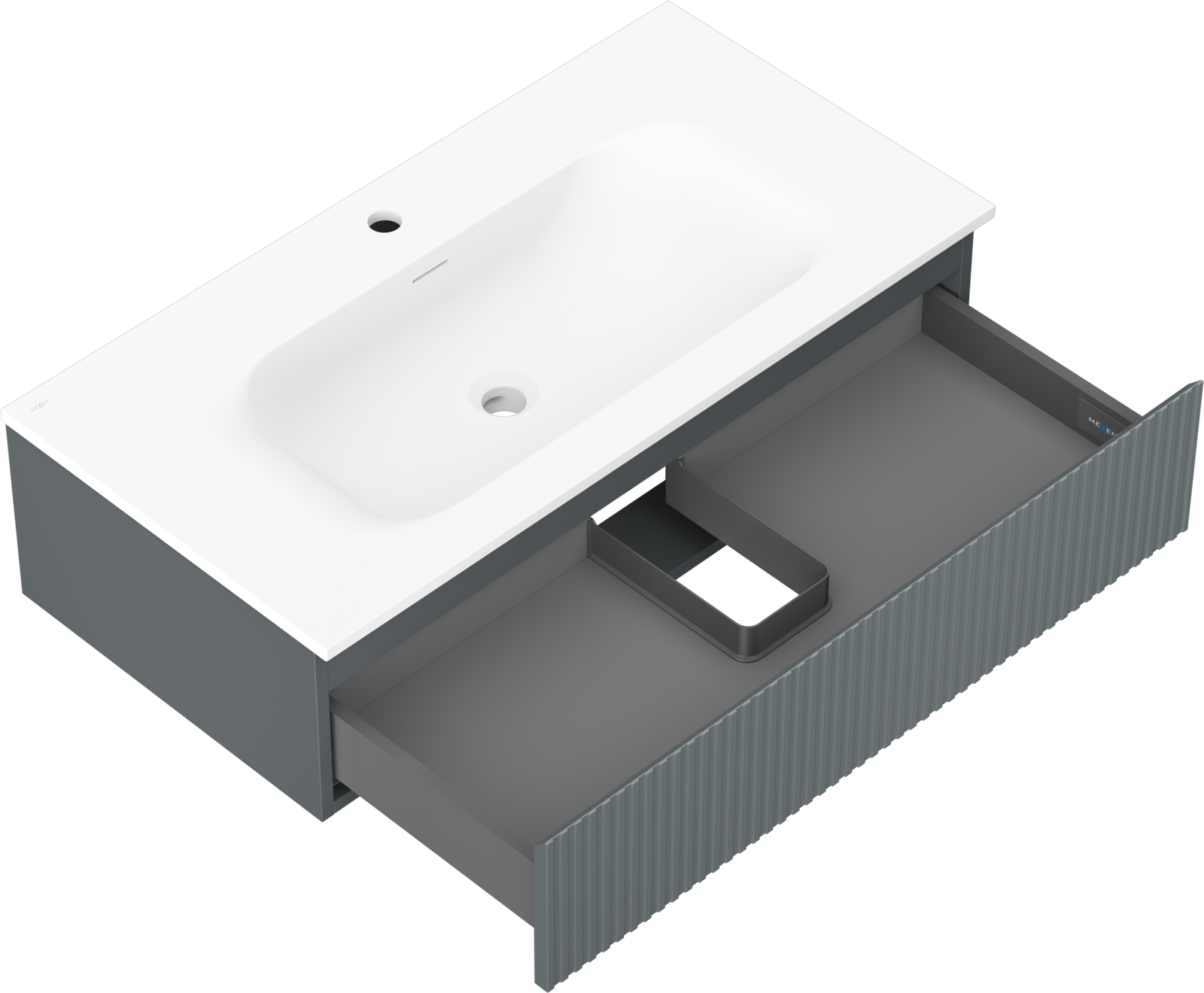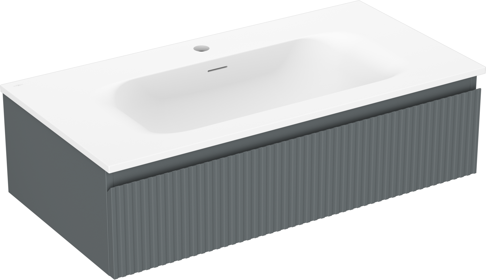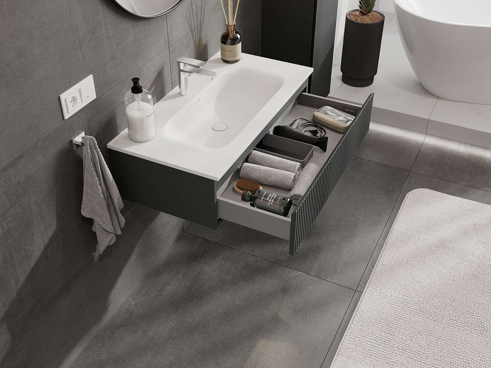 Mexen Rivel armário de casa de banho 90 cm com lavatório Vela, 1 gaveta, canelado, grafite mate/branco mate
