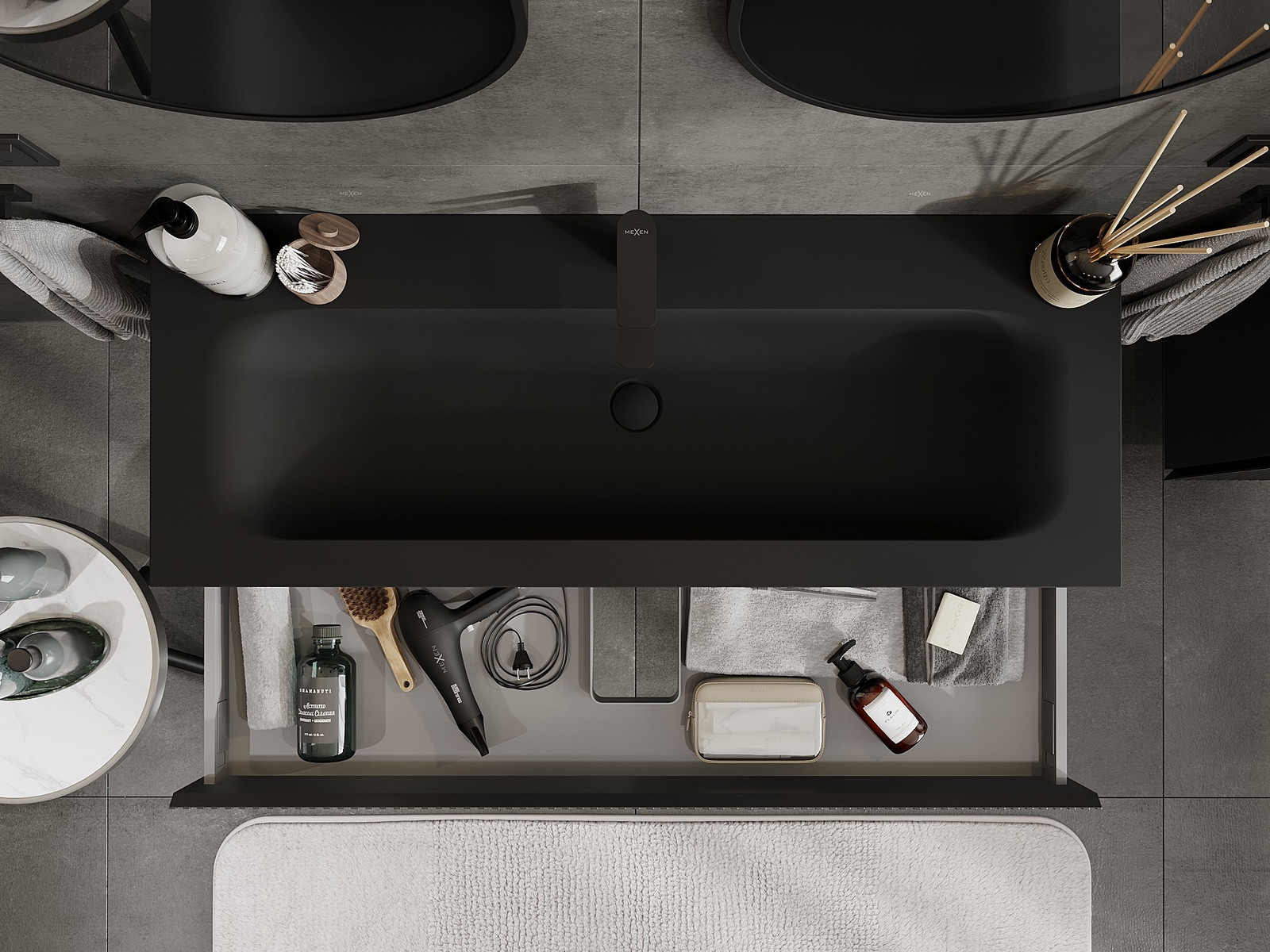 Mexen Rivel armário de casa de banho 120 cm com lavatório Vela, 1 gaveta, canelado, preto mate - 91A20-12023-1-BF71-W23M71