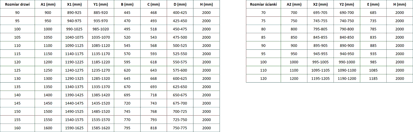 Tamanho: 90x100 cm (porta 90 cm, parede 100 cm)