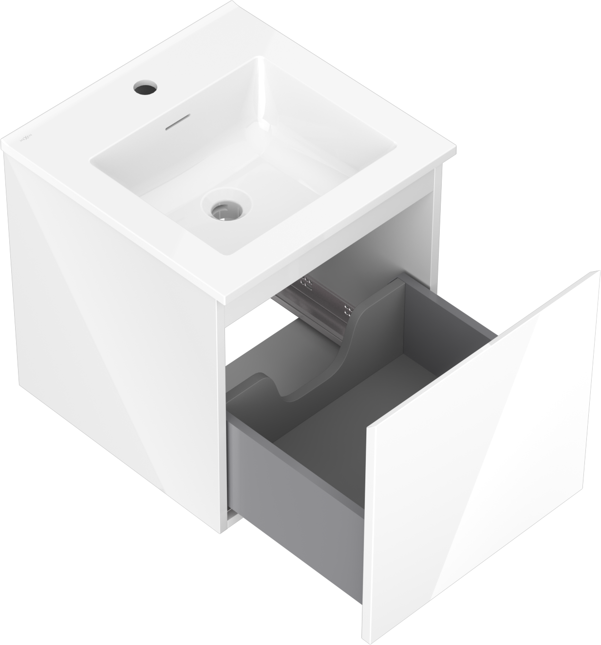 Mexen Orio armário de casa de banho de 45 cm com lavatório Otis, 1 gaveta, branco brilhante - 91A10-04547-1-BF00-W18M00