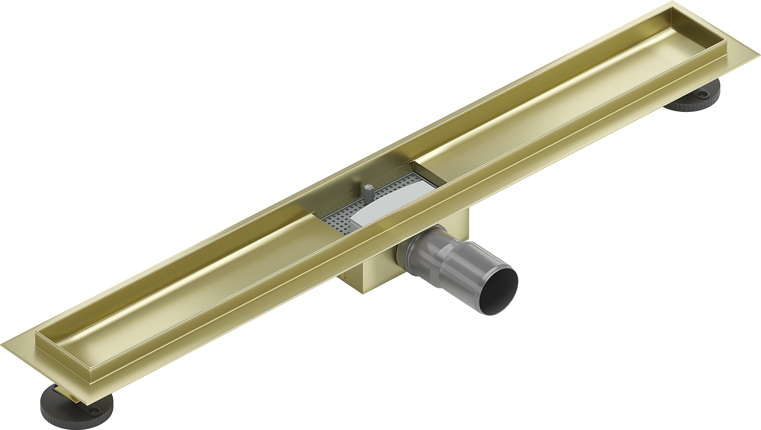 O escoamento linear é montado a uma profundidade de apenas 52 mm. A profundidade reduzida facilita a preparação da superfície para a instalação do escoamento e o nivelamento fácil, assegurando elevada estética e drenagem eficaz da água.