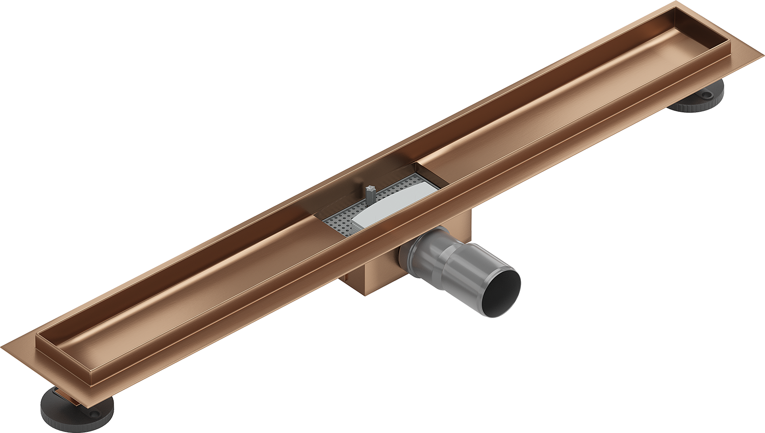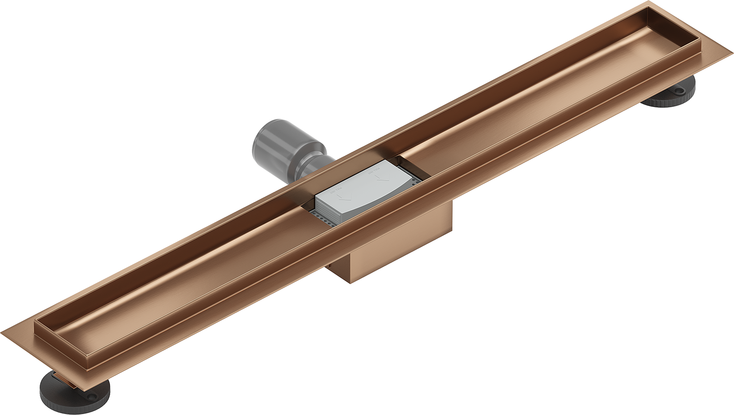 O escoamento linear é montado a uma profundidade de apenas 52 mm. A profundidade reduzida facilita a preparação da superfície para a instalação do escoamento e o nivelamento fácil, assegurando elevada estética e drenagem eficaz da água.