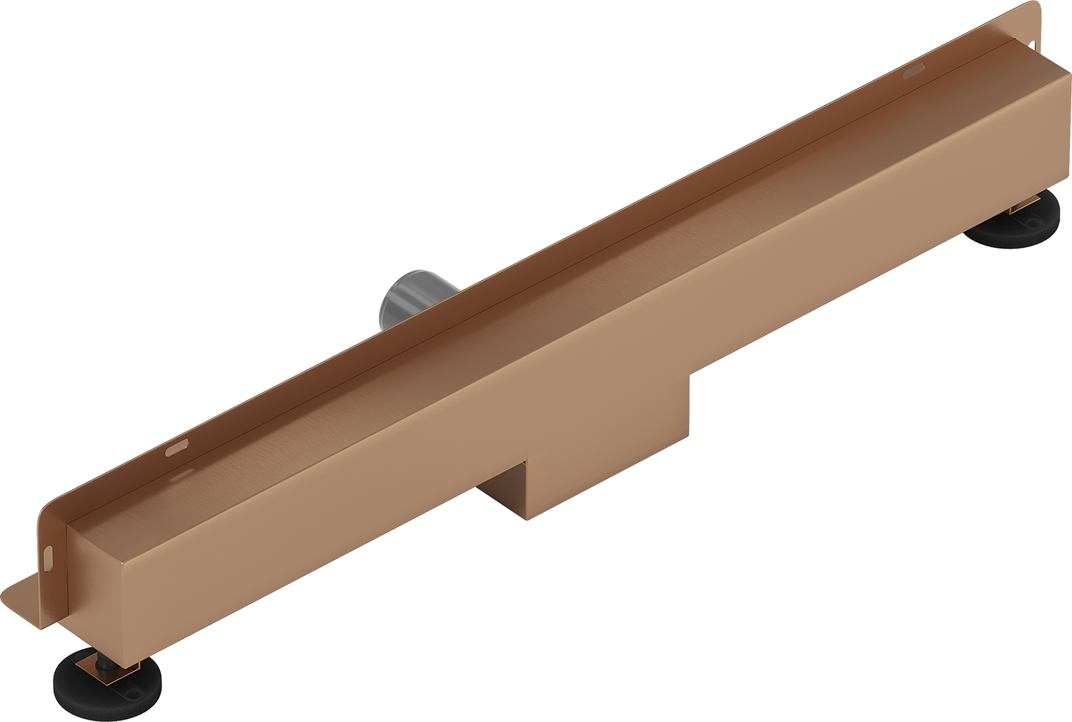 O escoamento linear é montado a uma profundidade de apenas 52 mm. A profundidade reduzida facilita a preparação da superfície para a instalação do escoamento e o nivelamento fácil, assegurando elevada estética e drenagem eficaz da água.