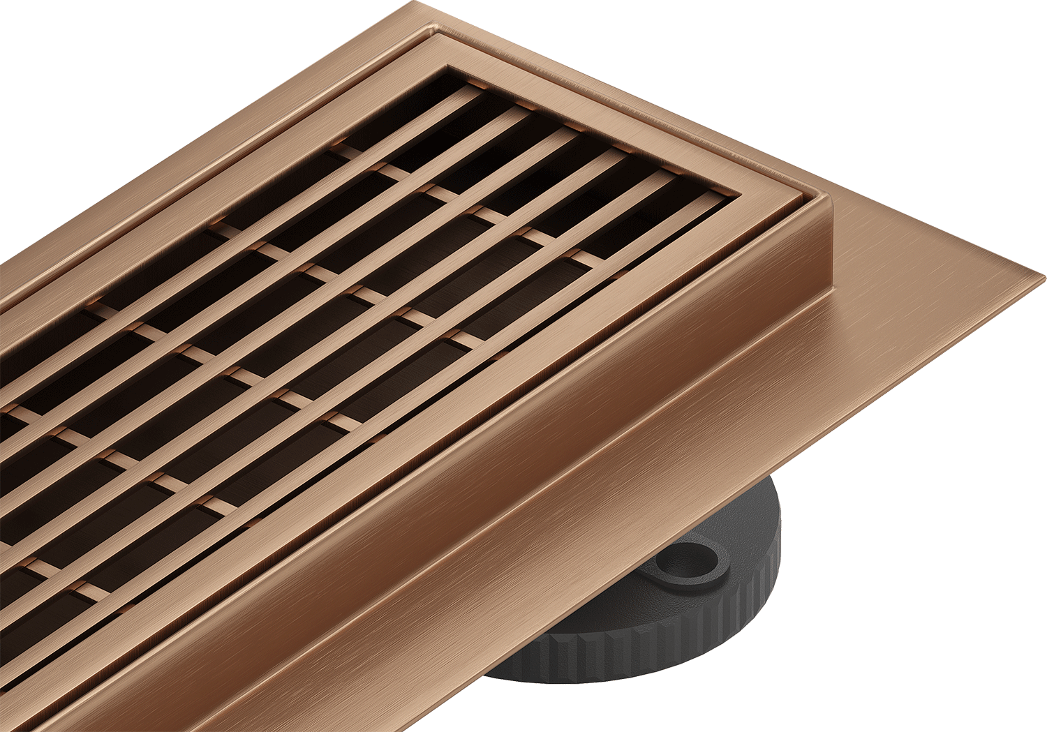 O escoamento linear é montado a uma profundidade de apenas 52 mm. A profundidade reduzida facilita a preparação da superfície para a instalação do escoamento e o nivelamento fácil, assegurando elevada estética e drenagem eficaz da água.