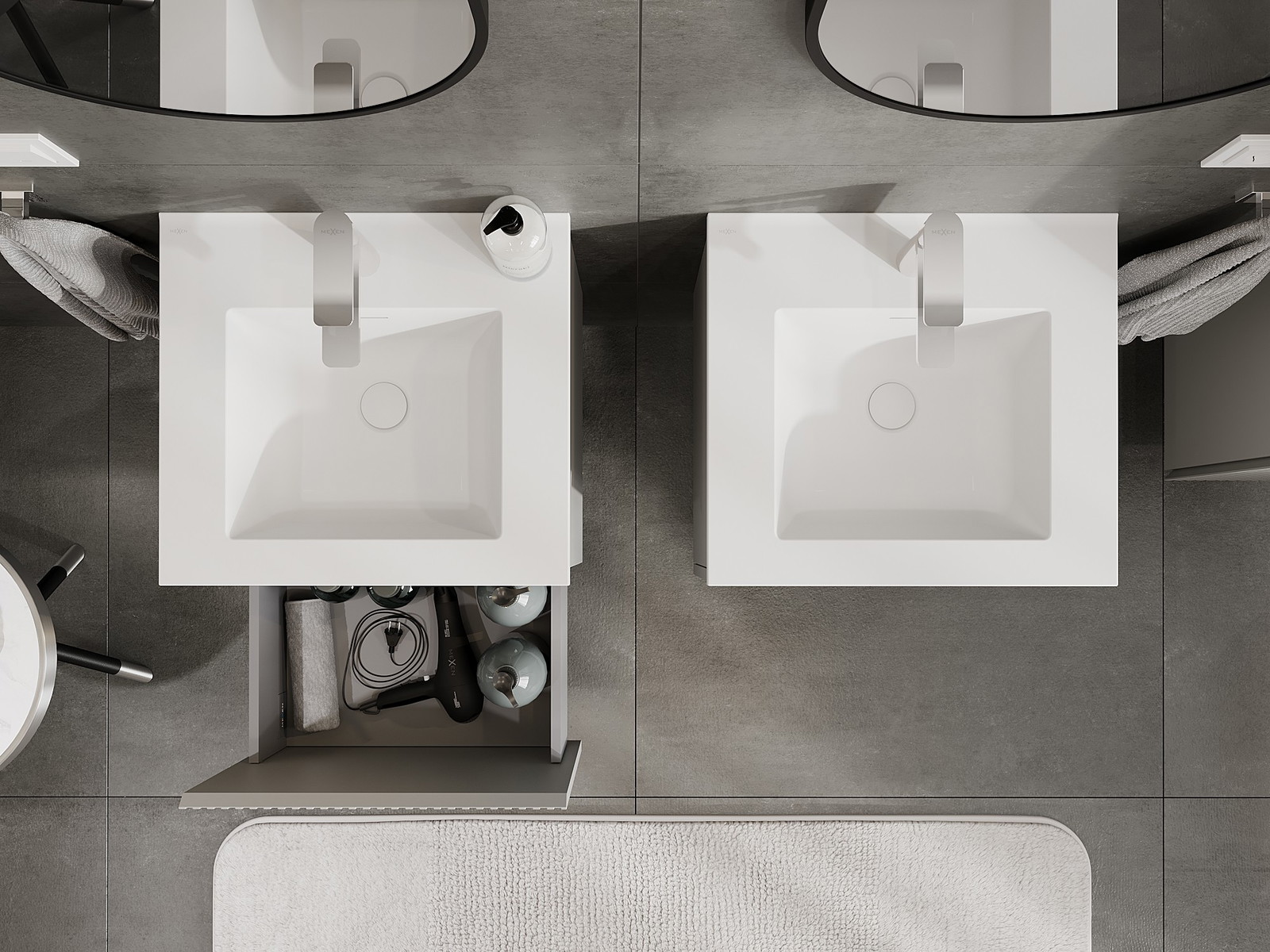 Mexen Rivel armário de casa de banho 50 cm com lavatório Otis, 1 gaveta, ranhurado, cinza mate/branco mate