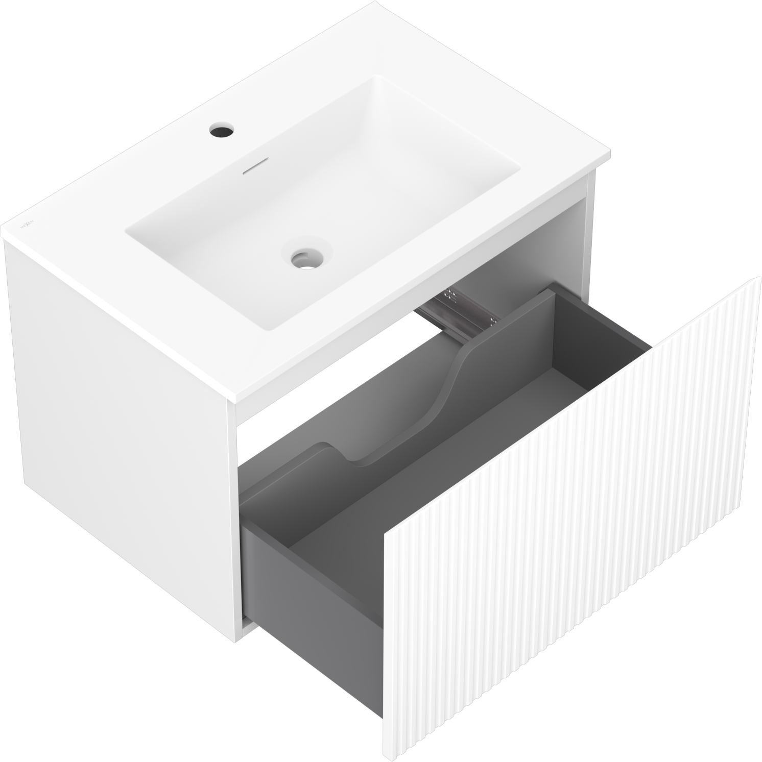 Mexen Rivel móvel de casa de banho 70 cm com lavatório Otis, 1 gaveta, ranhurado, branco mate - 91A20-07047-1-BF01-W18M01