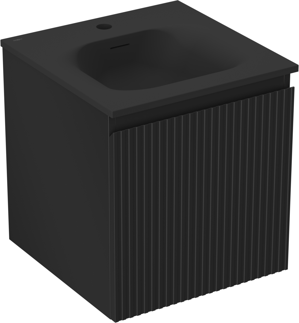Mexen Rivel armário de casa de banho 45 cm com lavatório Vela, 1 gaveta, canelada, preto mate - 91A20-04547-1-BF71-W23M71