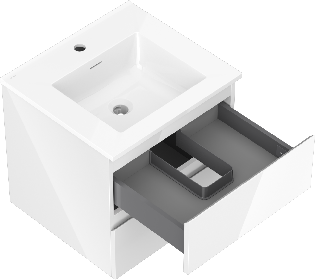 Mexen Orio armário de casa de banho de 50 cm com lavatório Otis, 2 gavetas, branco brilhante - 91A10-05047-2-BFF00-W18M00
