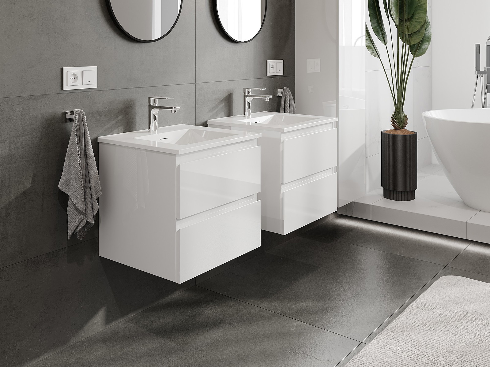 Os nossos móveis de casa de banho modulares podem ser combinados em várias configurações de cores, permitindo total personalização. Pode escolher tanto a aparência como as funções de cada elemento, o que permite ajustar os móveis às suas próprias preferências de estilo e uso.