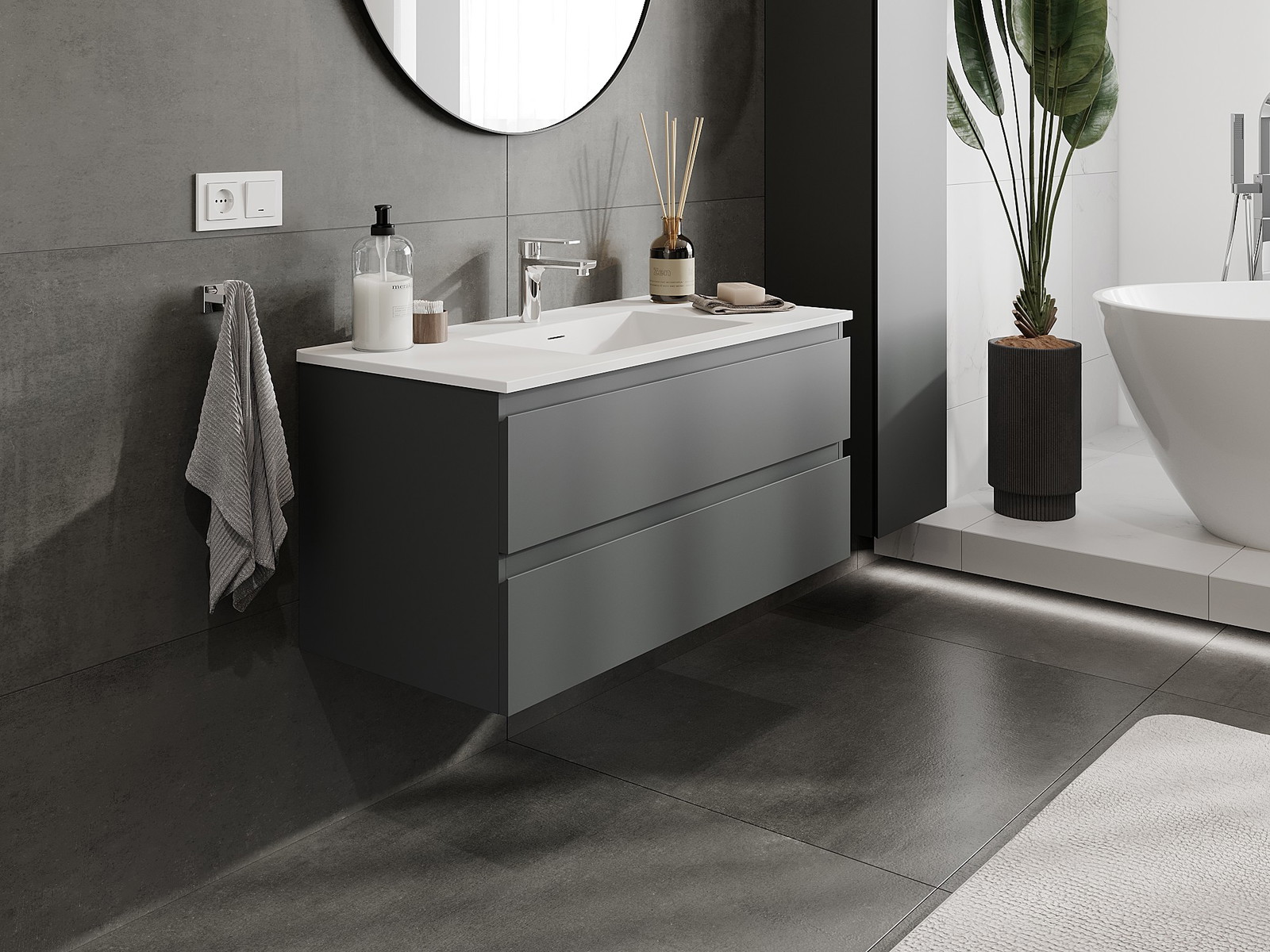 Mexen Orio armário de casa de banho 100 cm com lavatório Otis, 2 gavetas, grafite mate/branco mate