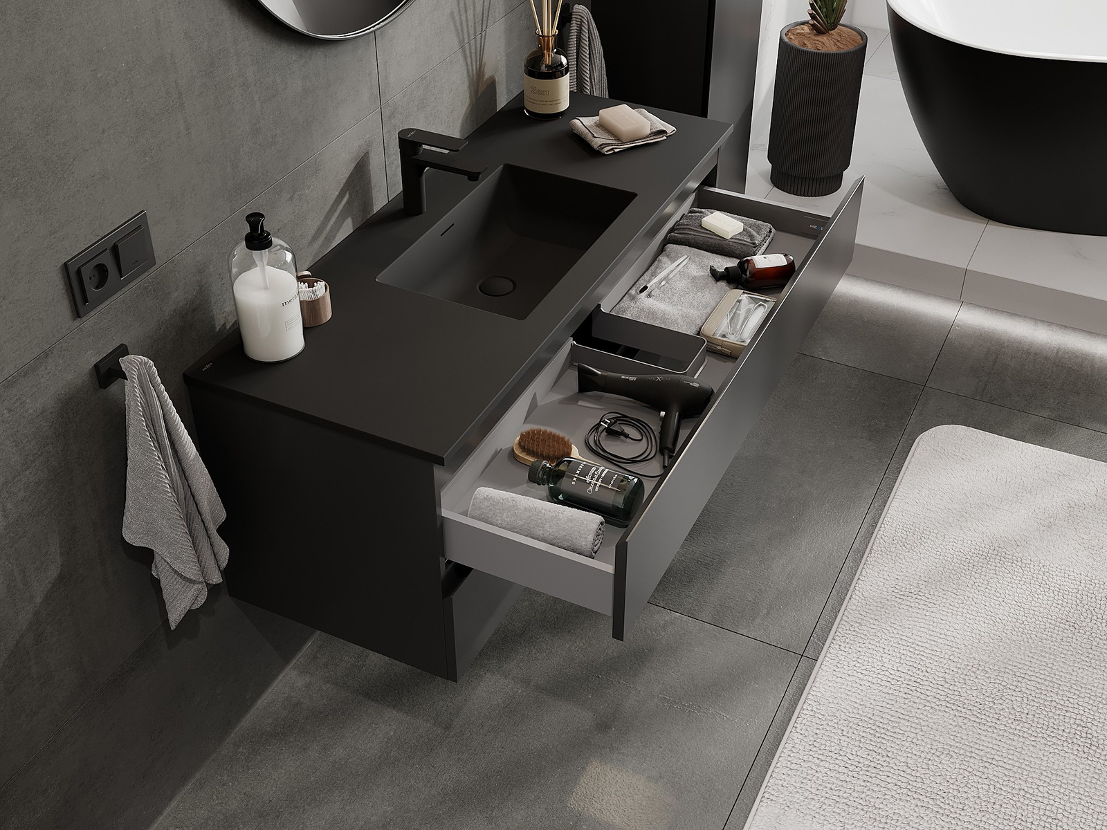 Mexen Orio armário de casa de banho 120 cm com lavatório Otis, 2 gavetas, preto mate - 91A10-12047-2-BFF71-W18M71