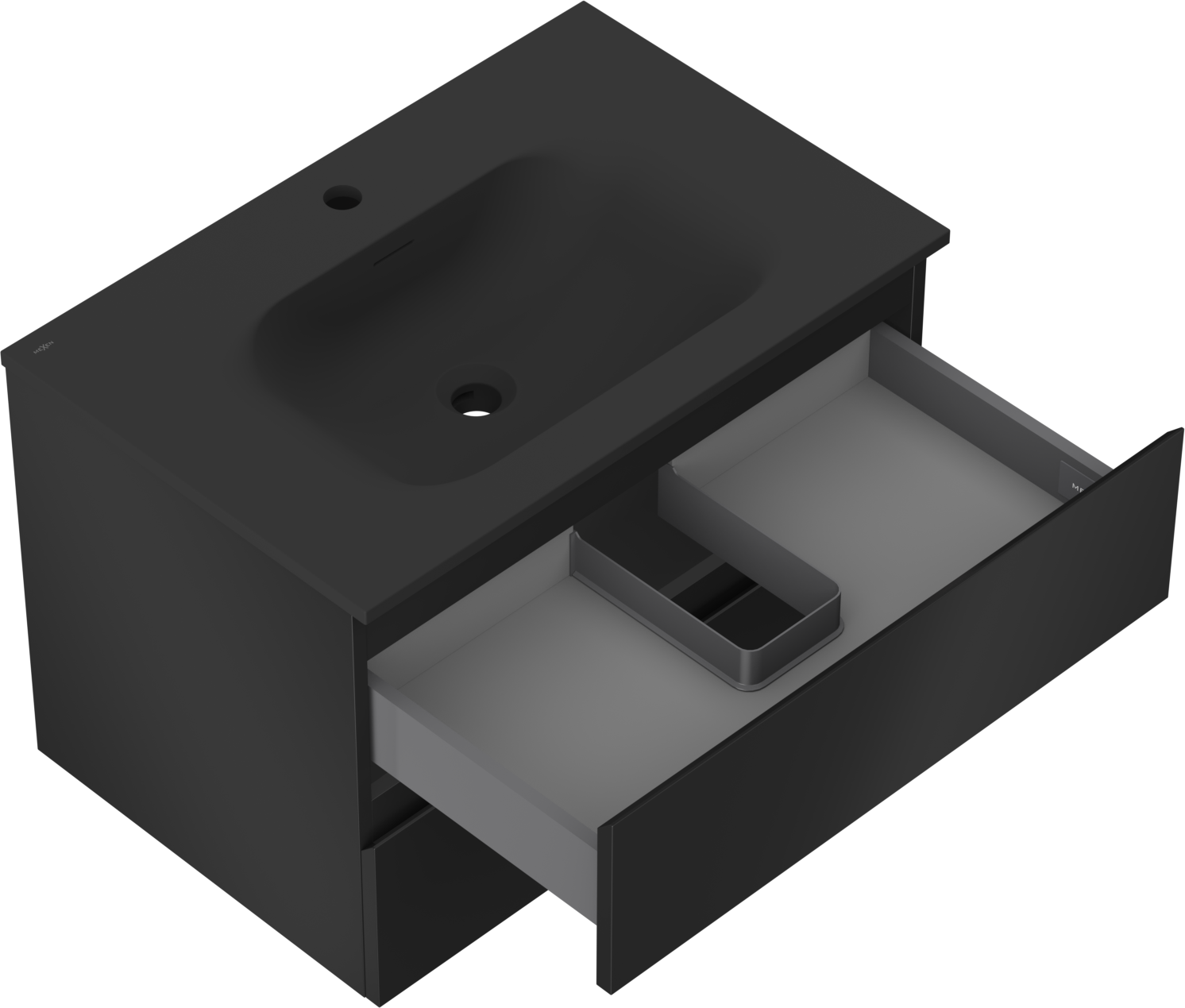 Mexen Orio armário de casa de banho 70 cm com lavatório Vela, 2 gavetas, preto mate - 91A10-07047-2-BFF71-W23M71