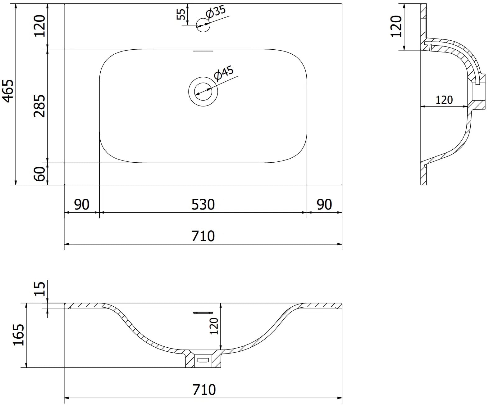 Dimensões do lavatório: