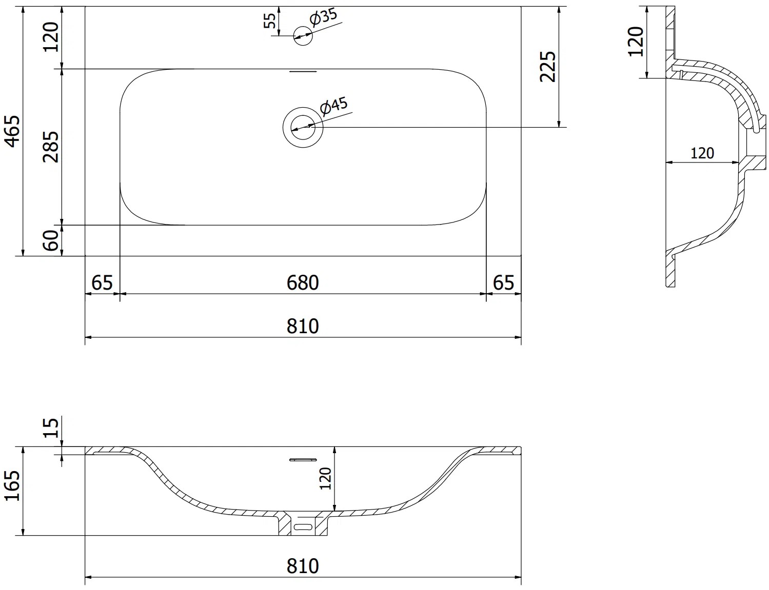 Dimensões do lavatório: