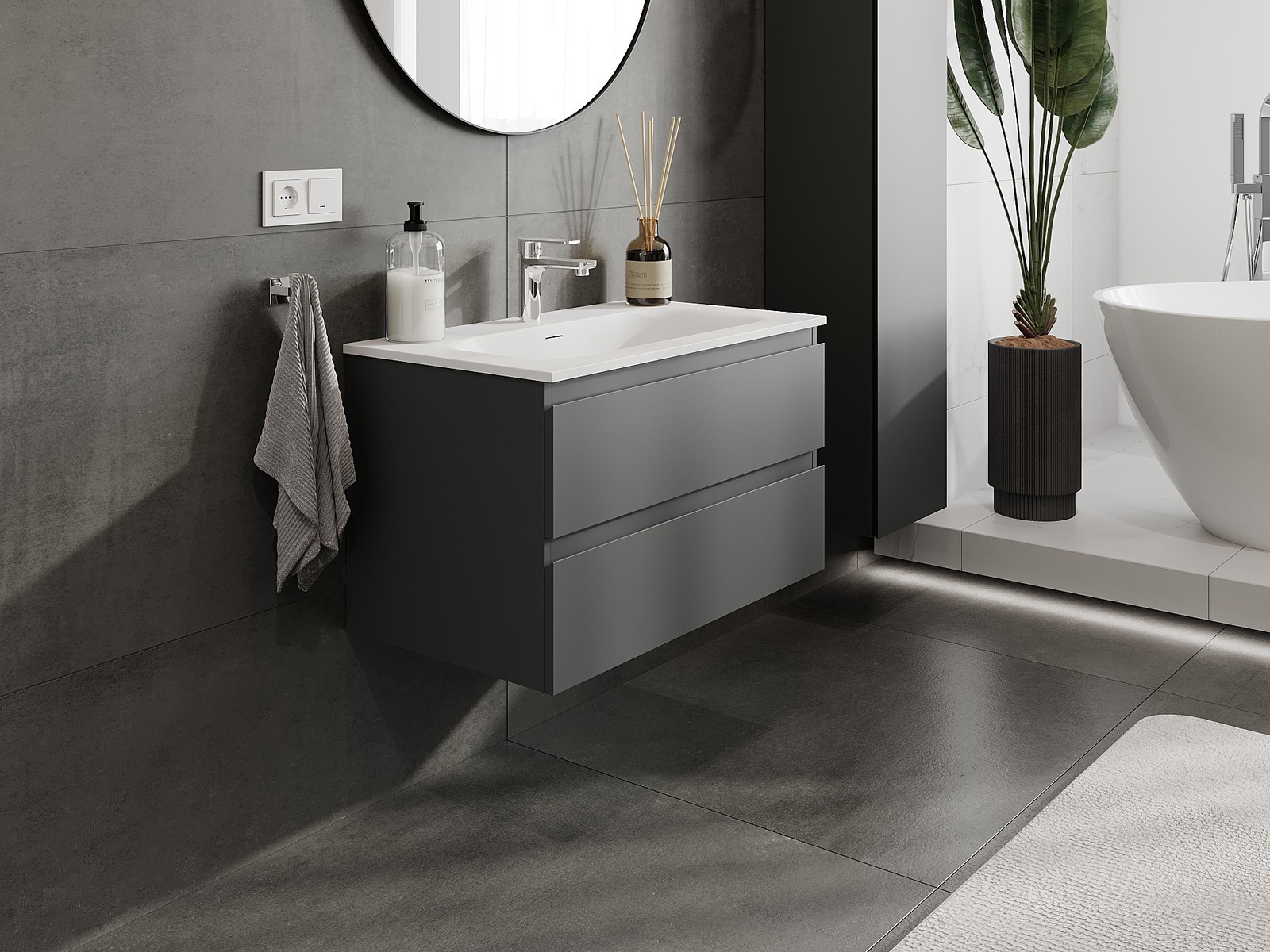 O painel coberto com um verniz de alta qualidade é uma excelente escolha para a casa de banho, proporcionando um aspeto elegante e uma grande resistência à ação da humidade e riscos. O verniz de alta qualidade protege a superfície do tampo, garantindo-lhe uma durabilidade longa, estética e facilidade de manutenção.